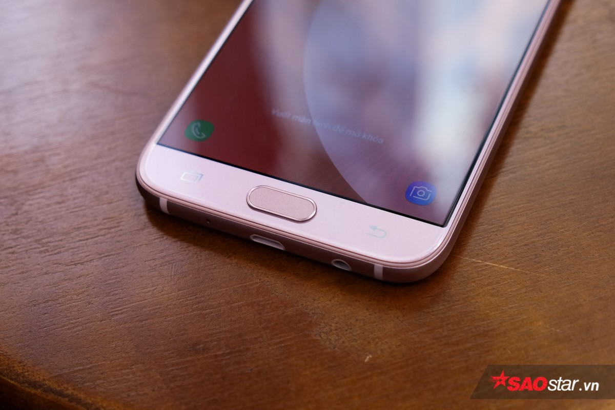 Theo quan sát của người viết, màu hồng trên Galaxy J7 Pro trông rất nhẹ nhàng và thực sự nữ tính, cùng với thiết kế bo cong mềm mại ở các góc cạnh, càng làm tăng thêm tươi trẻ, dịu dàng của máy.