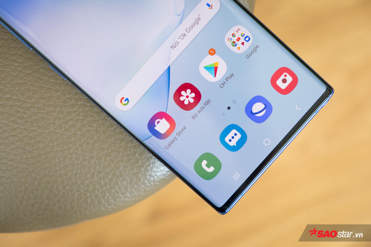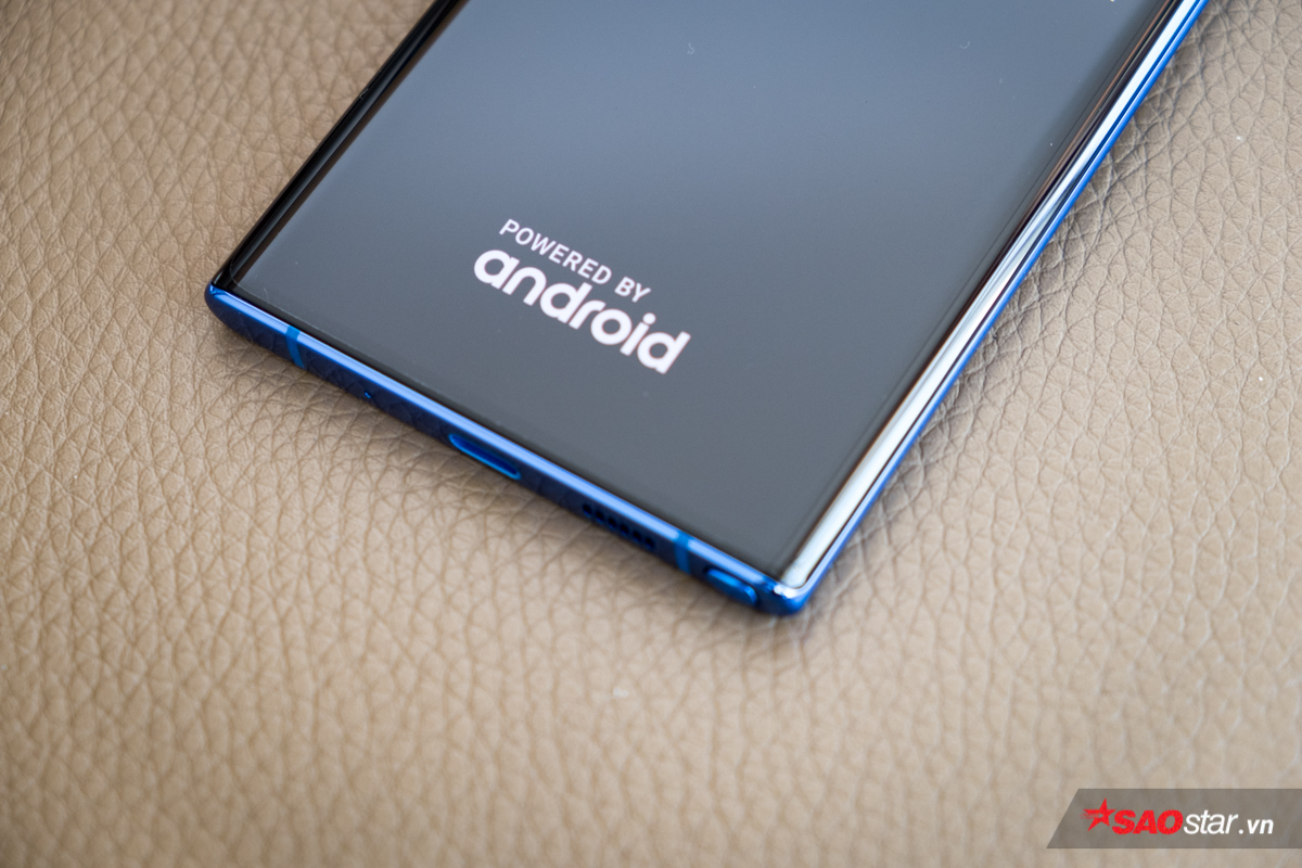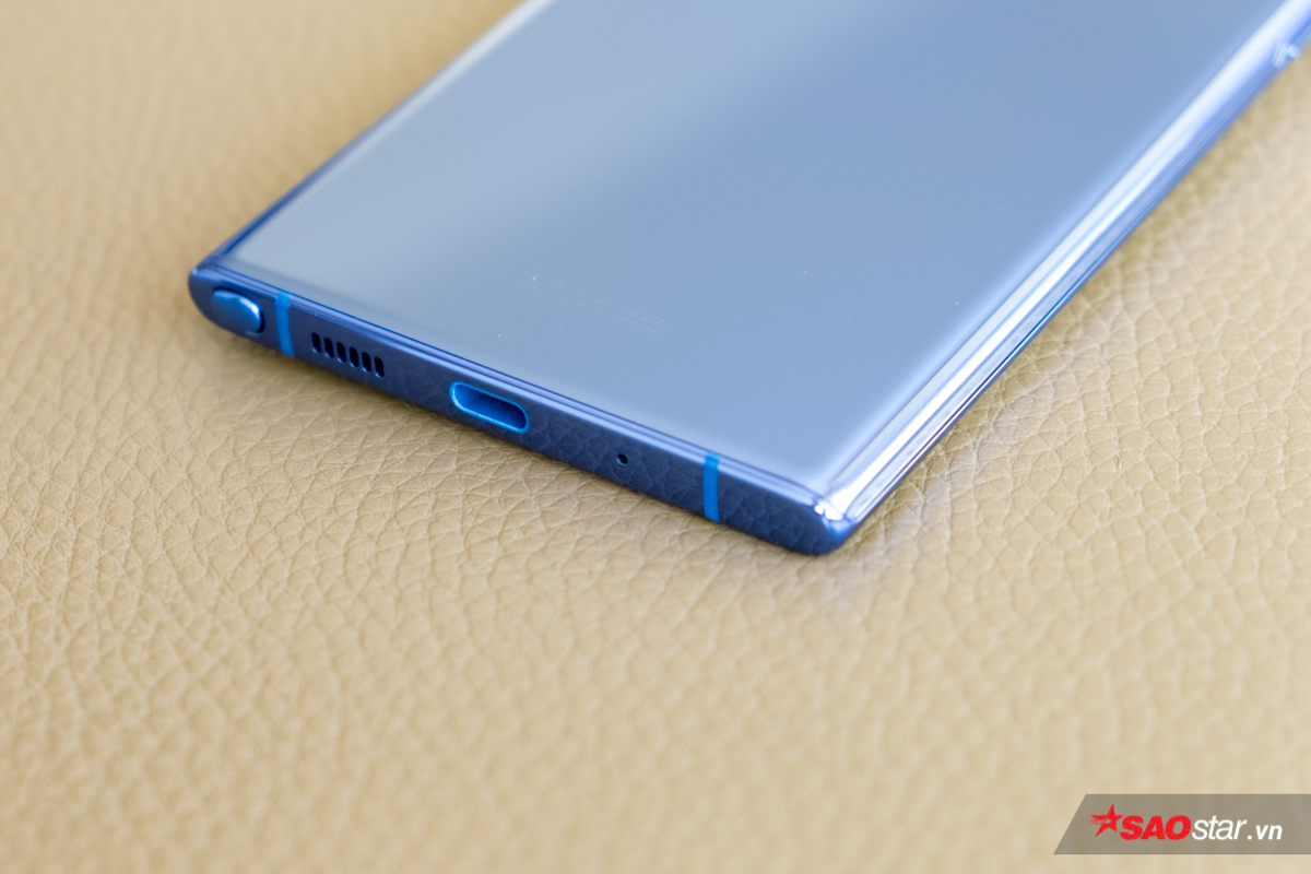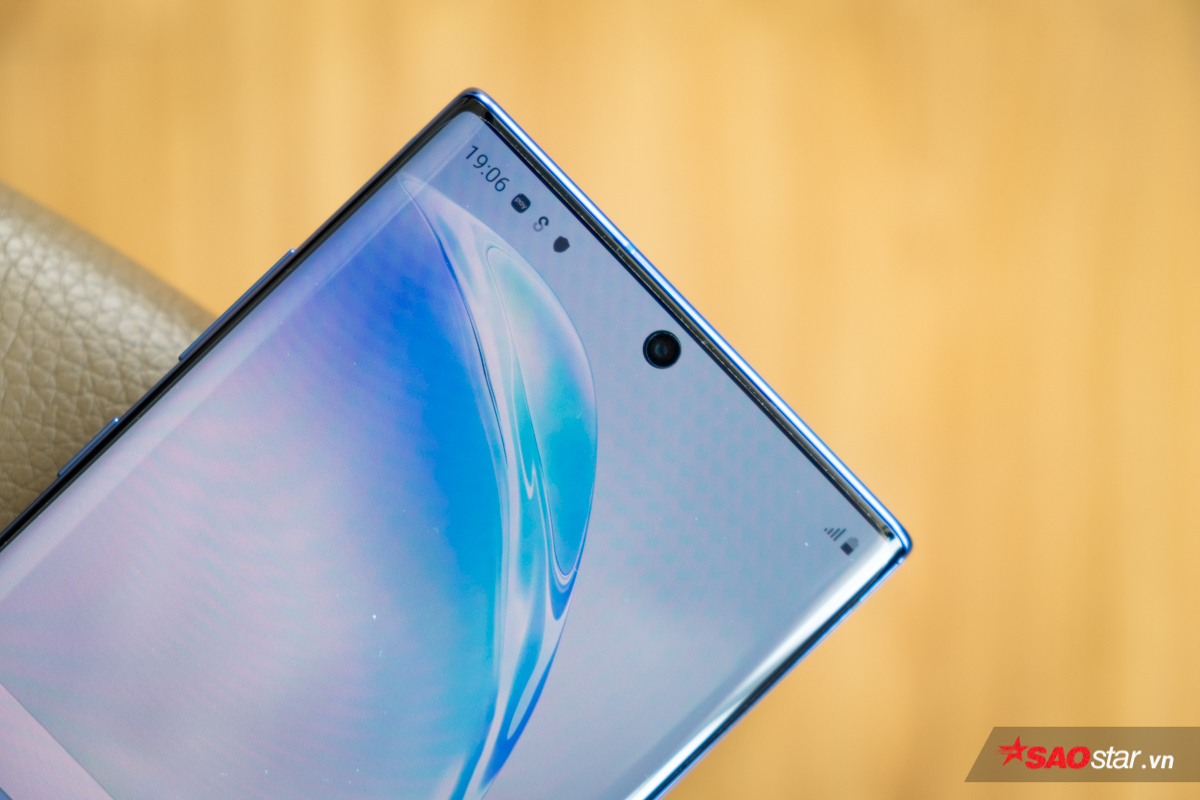 Màu sắc Xanh Aura mà Samsung phủ lên chiếc Note10+ có thể phản chiếu lại ánh sáng, và mang đến một dãy đầy đủ các sắc xanh tuỳ vào độ nghiêng và mức độ ánh sáng chiếu vào thiết bị.