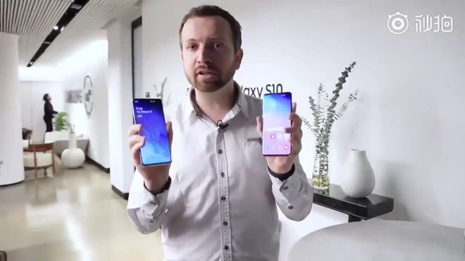 Cụ thể, một video trên tay S10/S10+ được đăng tải trên Weibo mới đây đã tiết lộ mọi chi tiết về siêu phẩm sắp được trình làng của Samsung. Video này được cho là được ghi hình bên trong phòng trưng bày kín của Samsung.
