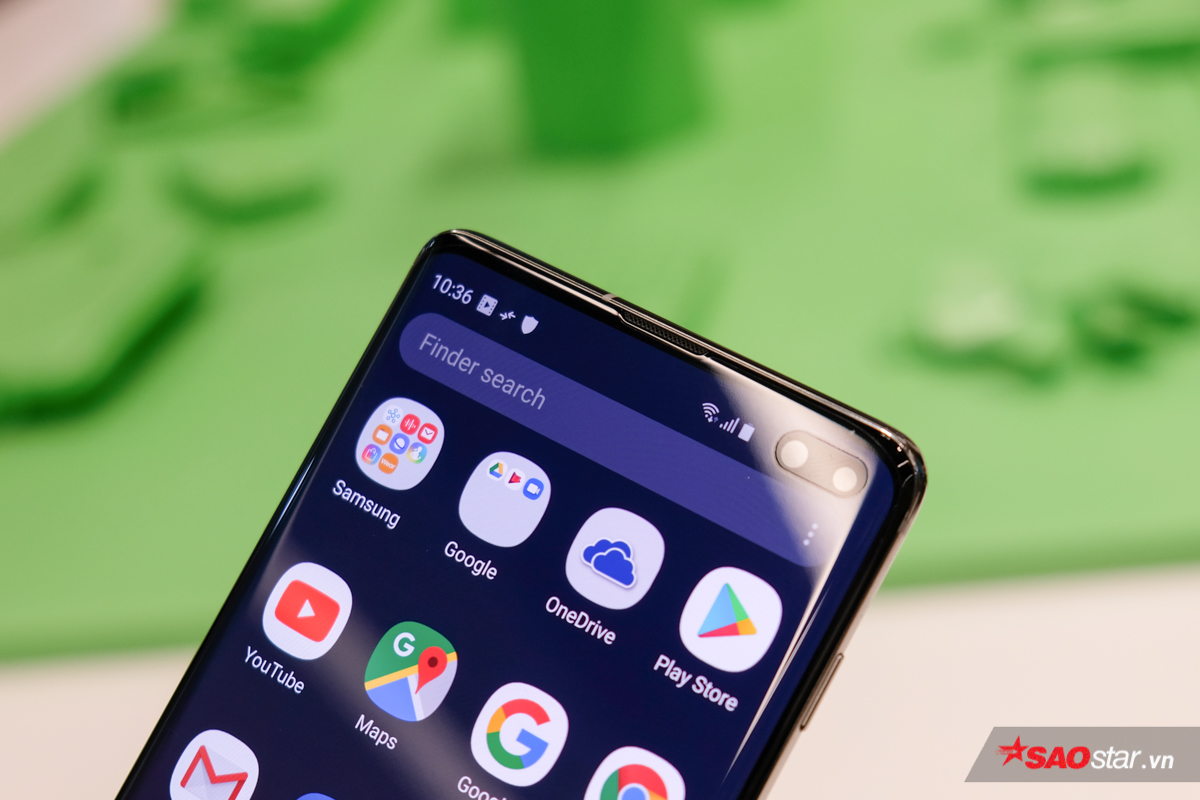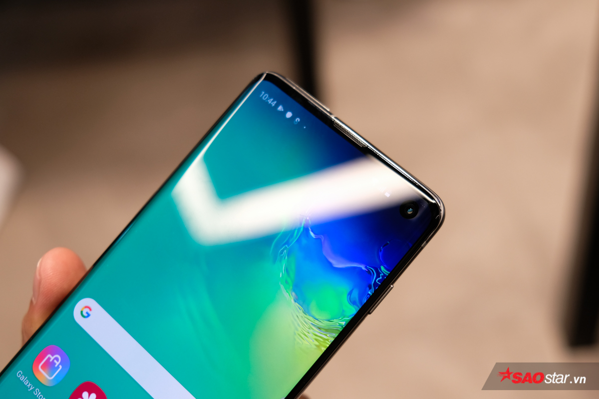 Một điểm khác biệt cũng dễ nhận ra ngoài kích thước màn hình khi so sánh S10 và S10+ nằm ở việc chiếc máy này chỉ có camera selfie đơn với thiết kế màn hình Infinity-O.