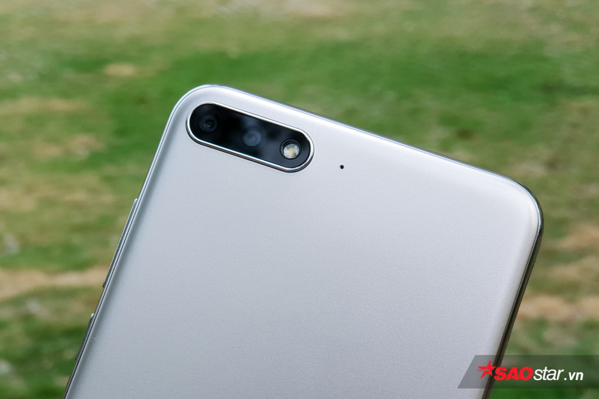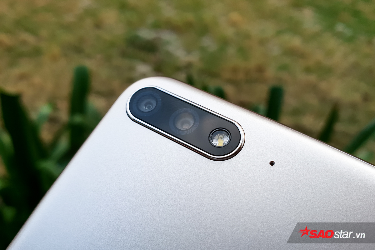 Điểm nhấn chính trên mặt lưng của chiếc điện thoại này còn nằm ở cụm camera kép với thông số lần lượt là 13 MP và 2 MP. Với cụm camera kép này, Huawei Y7 Pro 2018 có khả năng chụp hình xóa phông.