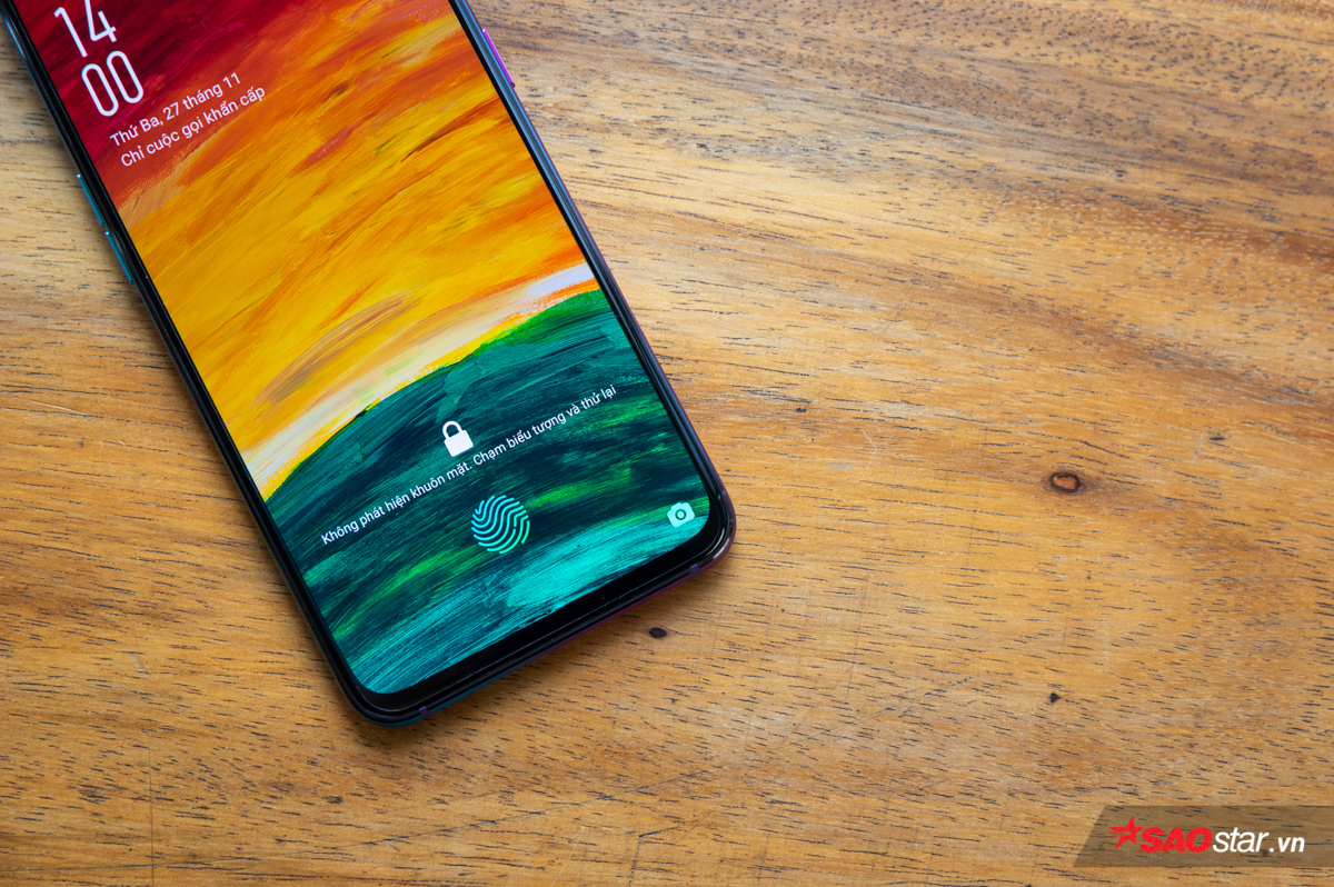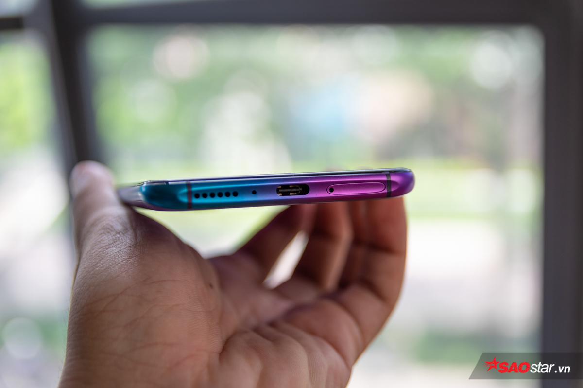Mép dưới màn hình Oppo R17 Pro cũng được tối ưu hóa khá tốt với viền tương đối mỏng, kết hợp viền hai cạnh mỏng, mang đến cảm giác màn hình hiển thị tràn viền, khá ấn tượng. Để tăng thêm tính thẩm mỹ, OPPO đã tích hợp cảm biến vân tay dưới màn hình trên R17 Pro.