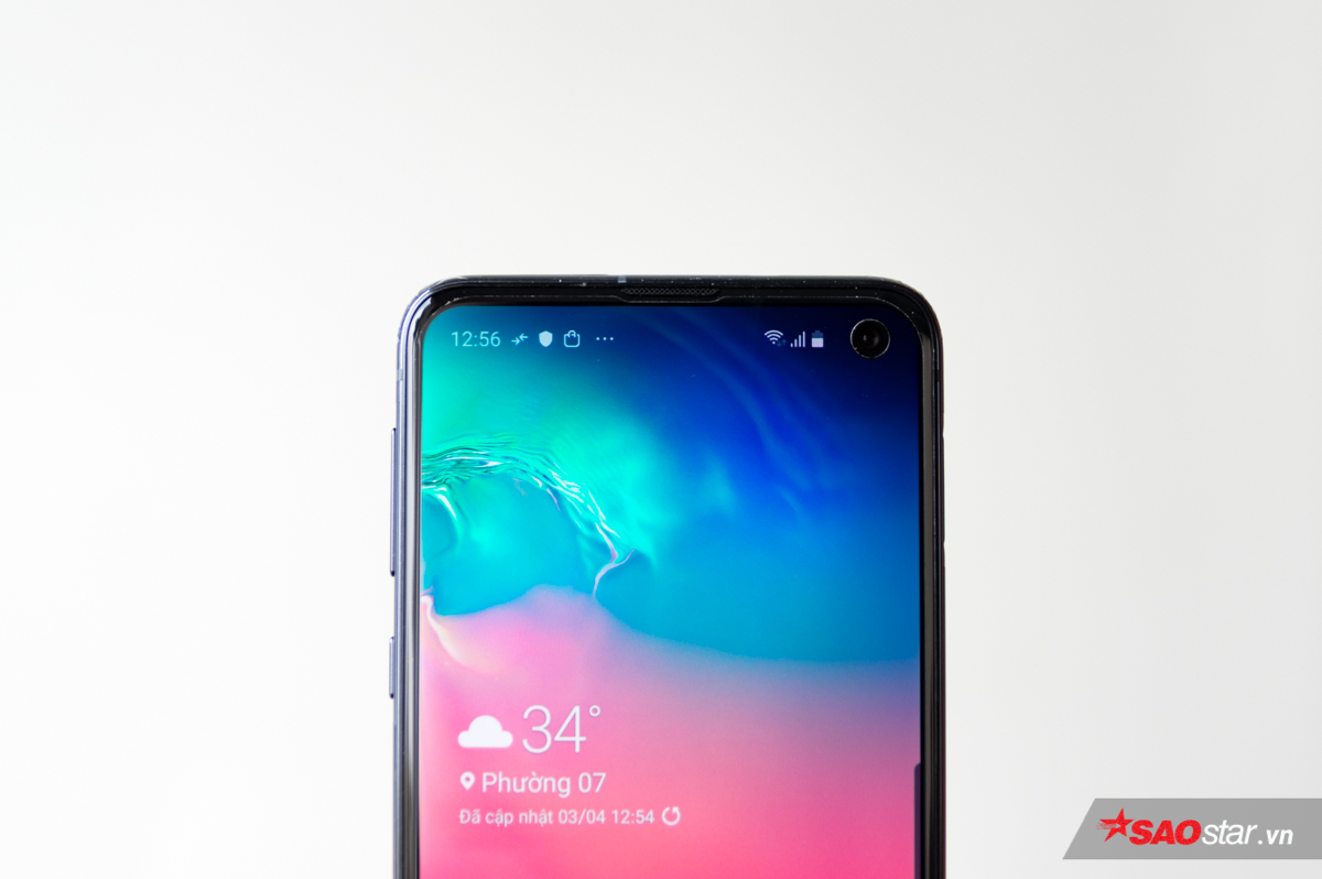 Tương tự như Galaxy S10/Galaxy S10+, Galaxy S10e cũng sở hữu thiết kế màn hình Infinity-O với một “lỗ” camera nhỏ trong màn hình dùng để đặt camera selfie 10 MP, khẩu độ f/1.9 và hỗ trợ lấy nét tự động Dual Pixel.
