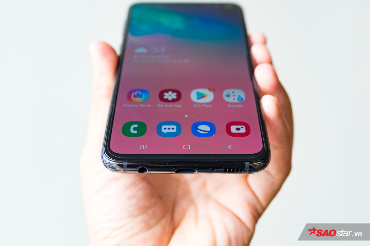 Dưới cạnh đáy, Samsung Galaxy S10e vẫn được trang bị cổng USB-C, loa ngoài, mic thoại và jack 3.5mm
