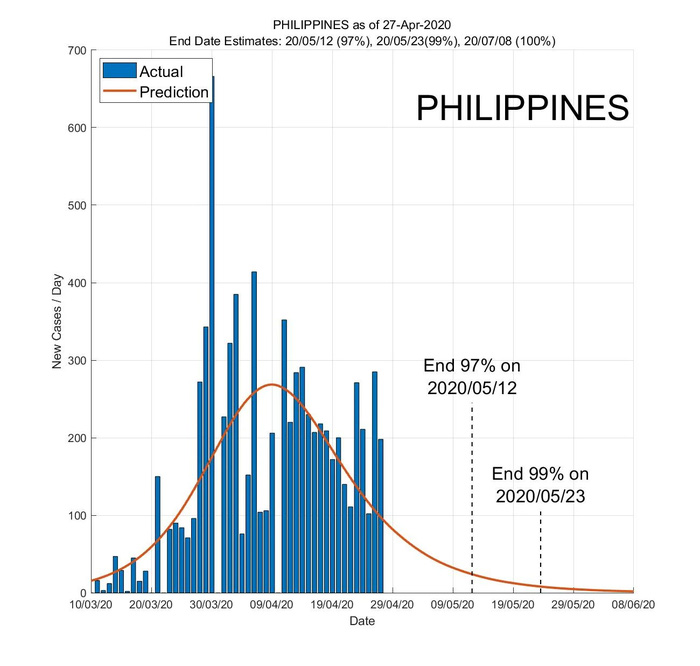 AI dự đoán dịch bệnh Covid-19 có khả năng gần hết đến 97% tại Philippines vào ngày 12/5. Đến ngày 23/5, tình hình sẽ được cải thiện đến 99% và dứt điểm hoàn toàn 100% vào ngày 8/7.