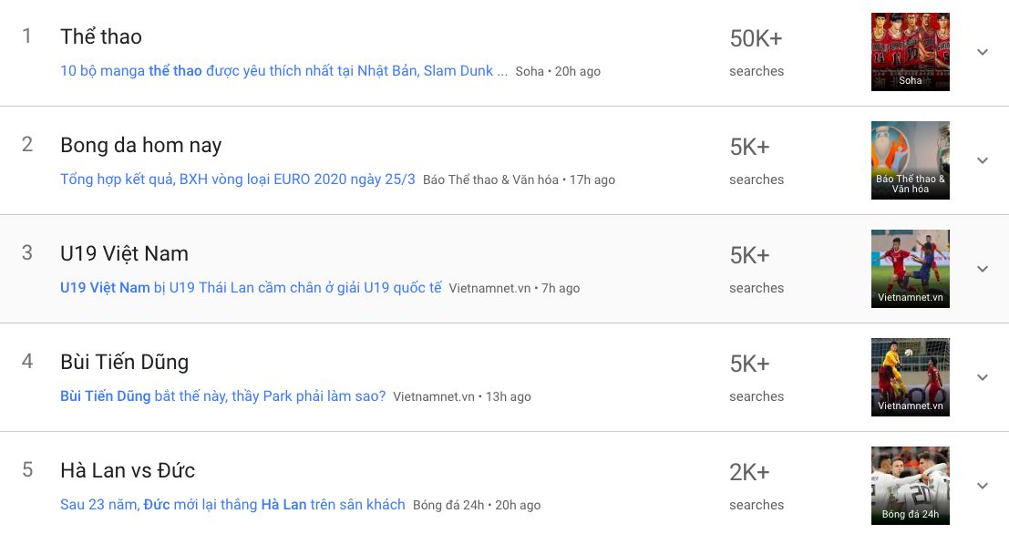 Theo ghi nhận trên công cụ tìm kiếm phổ biến nhất Việt Nam, trước thời điểm trận đấu U23 Việt Nam gặp U23 Thái Lan diễn ra một ngày, Bùi Tiến Dũng là một trong những chủ đề tìm kiếm được thực hiện nhiều nhất tại Việt Nam. Trong một ngày không có quá nhiều sự kiện, 5 chủ đề được người dùng Việt Nam tìm kiếm nhiều nhất trên Google đều liên quan đến thể thao trong đó Bùi Tiến Dũng là cá nhân duy nhất xuất hiện. Trước đó, Bùi Tiến Dũng đã có nhiều màn xử lý vụng về trong trận đấu gặp U23 Brunei khiến khung thành đội tuyển Việt Nam chao đảo và người hâm mộ được dịp thót tim.