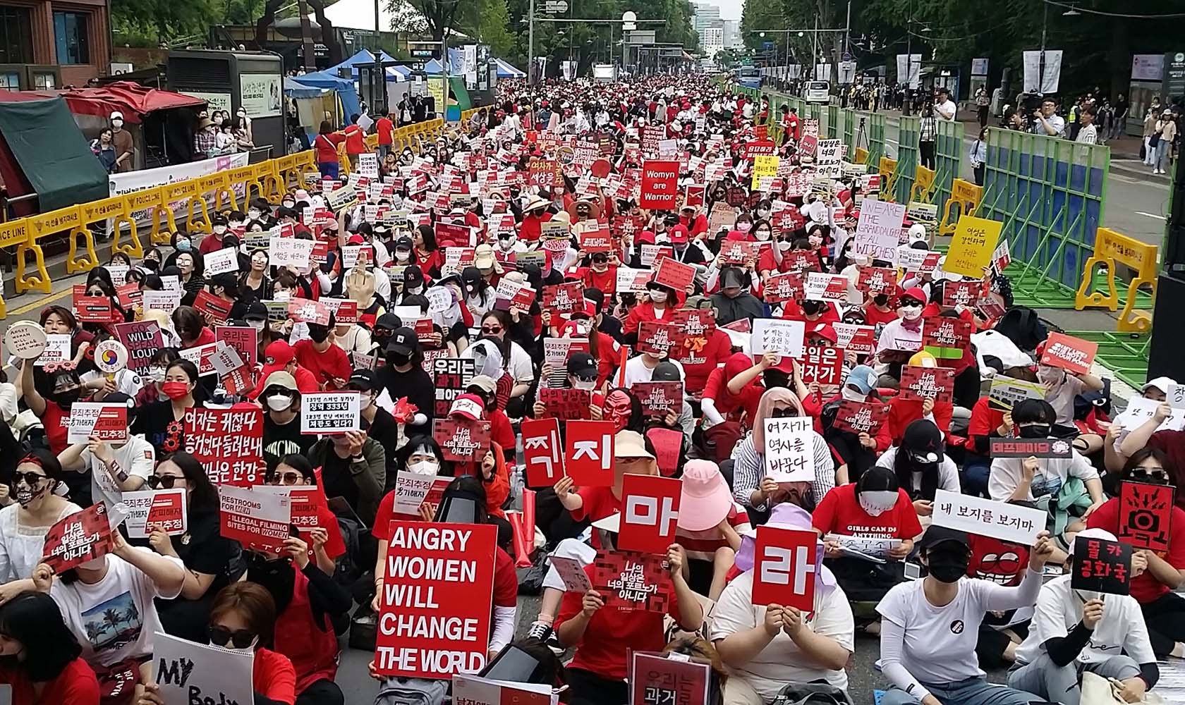 Hàng năm, có đến hàng trăm ngàn phụ nữ Hàn Quốc xuống đường để biểu tình phản đối hành động đê hèn của những kẻ biến thái và yêu cầu chính phủ đưa ra những biện pháp xử lý thoả đáng hơn. Theo Ryu Hye-jin - thành viên của tổ chức Nữ quyền tại Hàn Quốc, khi họ thành lập đội trợ giúp miễn phí cho các nạn nhân gỡ bỏ video có hình ảnh của mình trên mạng, họ đã lập tức bị quá tải với hàng chục ngàn lời yêu cầu giúp đỡ.
