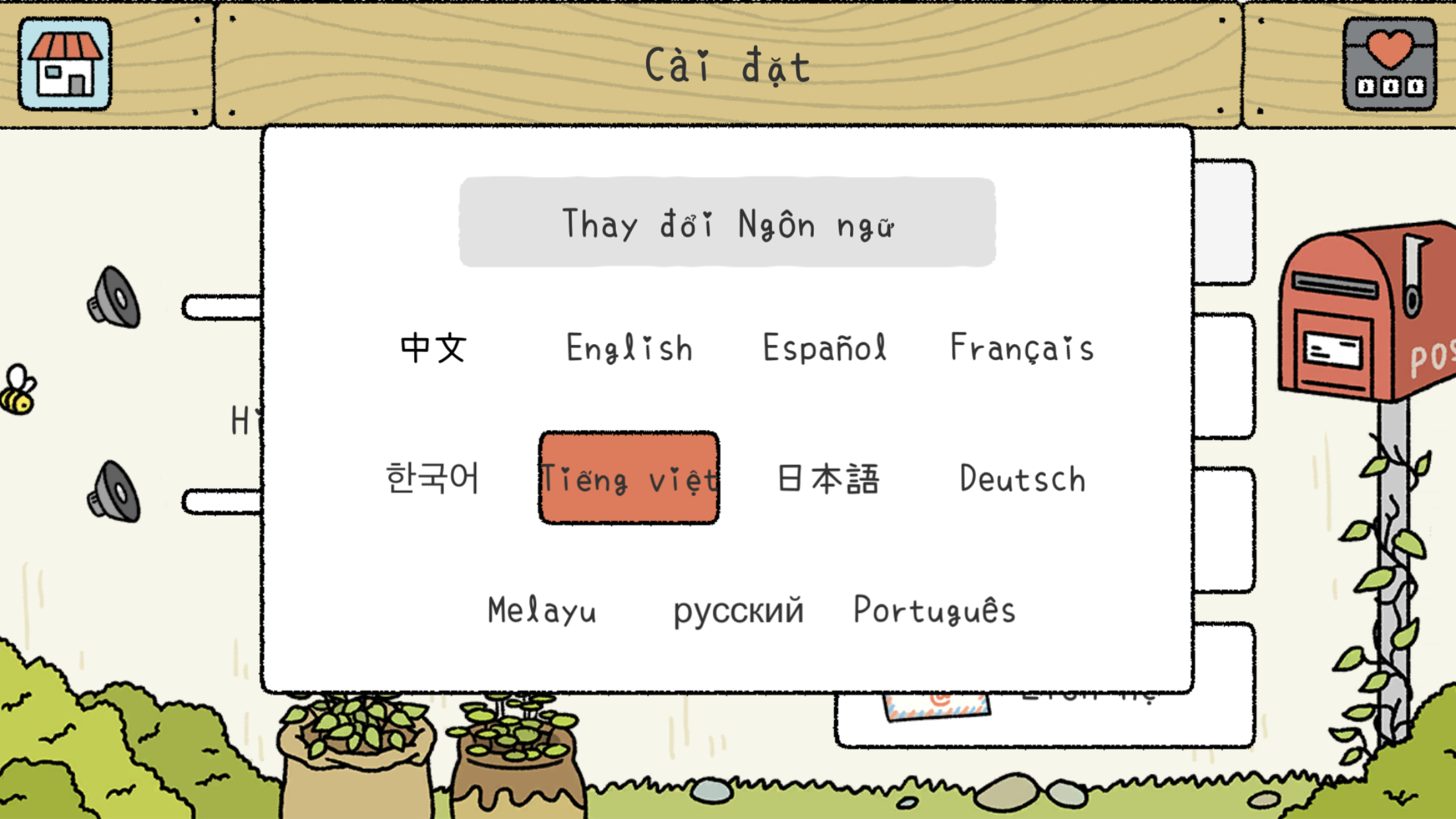 Người chơi Adorable Home đã có thể thay đổi ngôn ngữ “Tiếng Việt” trong phần cài đặt.