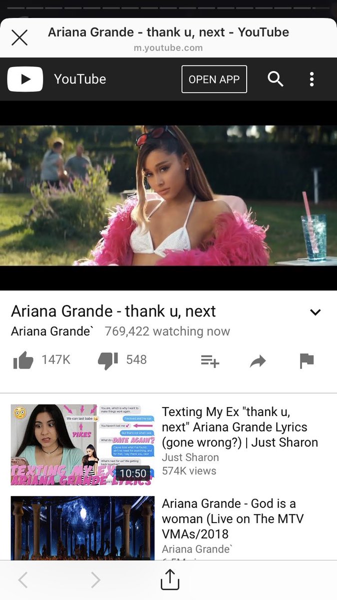Mới đây, Ariana Grande đã phát hành MV mới nhất của mình mang tên gọi ‘thank u, next’ trên YouTube dưới hình tức live-streaming và cô nhanh chóng tạo ra được một kỉ lục “vô tiền khoáng hậu” trên trang chia sẻ video lớn nhất hành tinh. Theo đó, một người phát ngôn của YouTube đã xác nhận với The Verge rằng số lượng người xem video “thank you, next” vào cùng một thời điểm đã lên tới 829.000 người, con số kỉ lục cho mộ MV phát hành lần đầu trên YouTube.