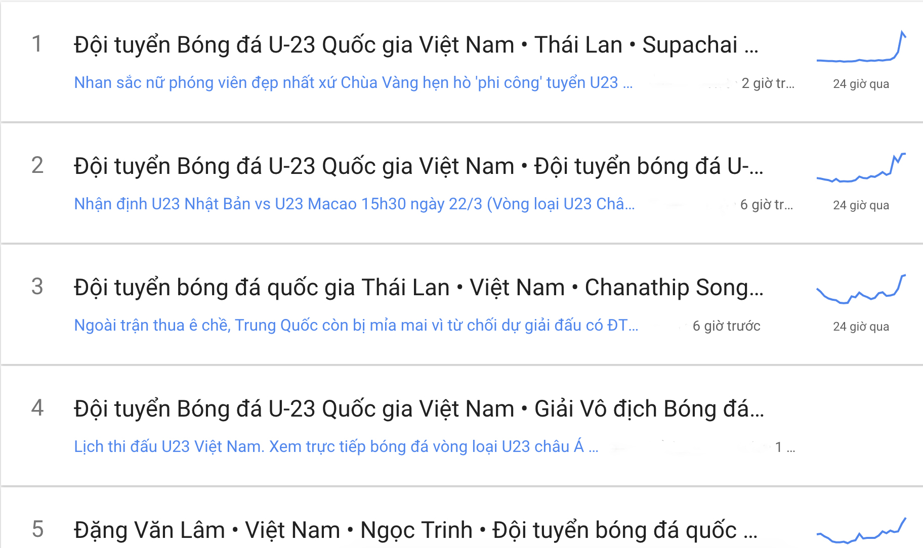 Mặc dù phải đến 20h tối nay, trận đấu giữa U23 Việt Nam và U23 Brunei mới chính thức bắt đầu. Tuy nhiên, từ khóa “Đội tuyển bóng đá U23 Quốc gia Việt Nam” đã lọt top 10 từ khoá được tìm kiếm nhiều nhất trên Google Việt Nam. Từ khoá này được tìm kiếm nhiều nhất tại Cà Mau, Bình Thuận, Bến Tre, Quảng Ngãi và Phú Yên.
