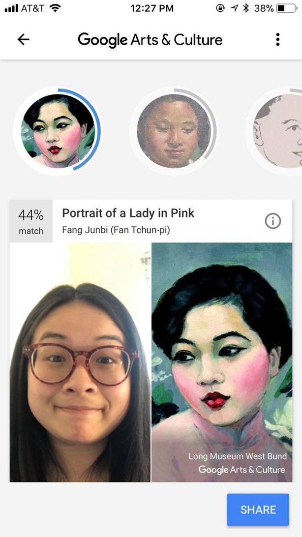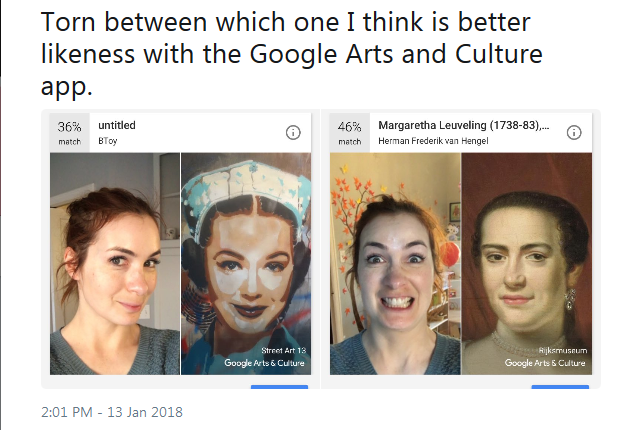 Google Arts & Culture (iOS / Android) là ứng dựng tổng hợp hơn 1000 tác phẩm nghệ thuật từ nhiều bảo tàng trên toàn thế giới. Với việc hỗ trợ thuật toán nhận dạng và trí thông minh nhân tạo, Google Arts & Culture có thể dễ dàng tìm thấy “anh/chị, em song sinh” của bạn trong 1000 tác phẩm nghệ thuật kể trên.