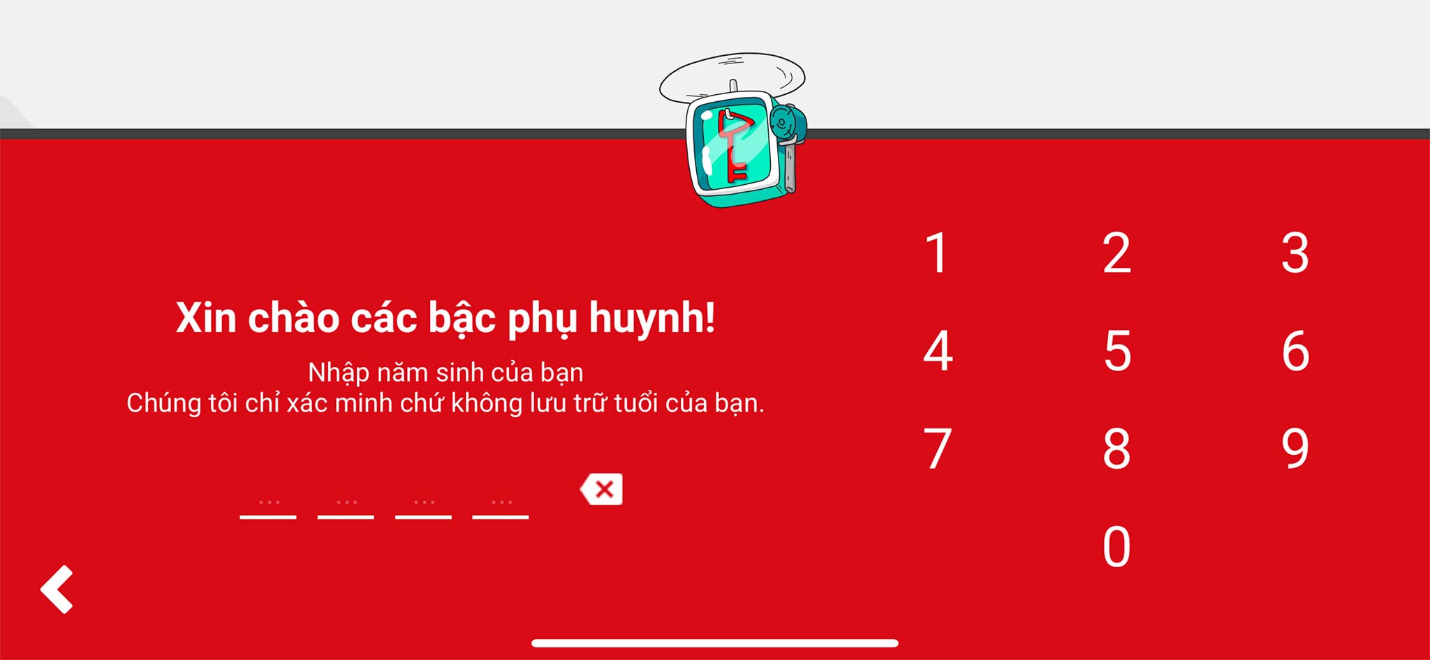 Để xác định lứa tuổi phù hợp, YouTube Kids sẽ bắt buộc phụ huynh phải cung cấp thông tin về năm sinh của mình, sau đó là tên, tháng và năm sinh của trẻ.