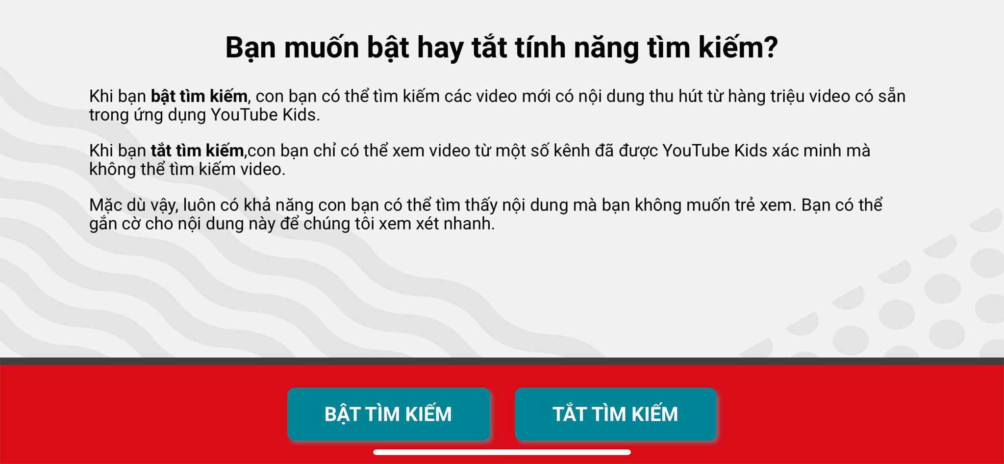 Phụ huynh cũng có thể toàn quyền quyết định về nội dung mà trẻ sẽ xem bằng cách ẩn khung tìm kiếm.