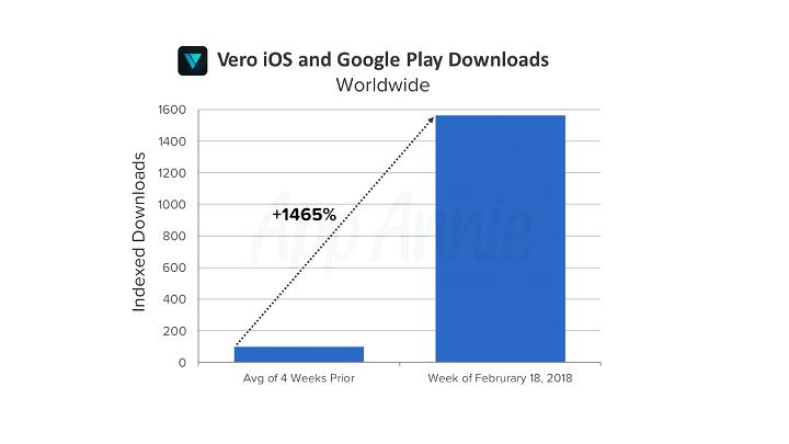 Theo thống kê của Sensor Tower, Vero đã đón nhận hơn 500.000 lượt đăng nhập của người dùng iOS trong vòng 24 giờ qua, tính riêng tại thị trường Mỹ. Dự đoán cho biết con số 600 ngàn lượt tải hiện tại trên App Store và Google Play của Vero sẽ tăng thêm 500 ngàn lượt mỗi ngày.