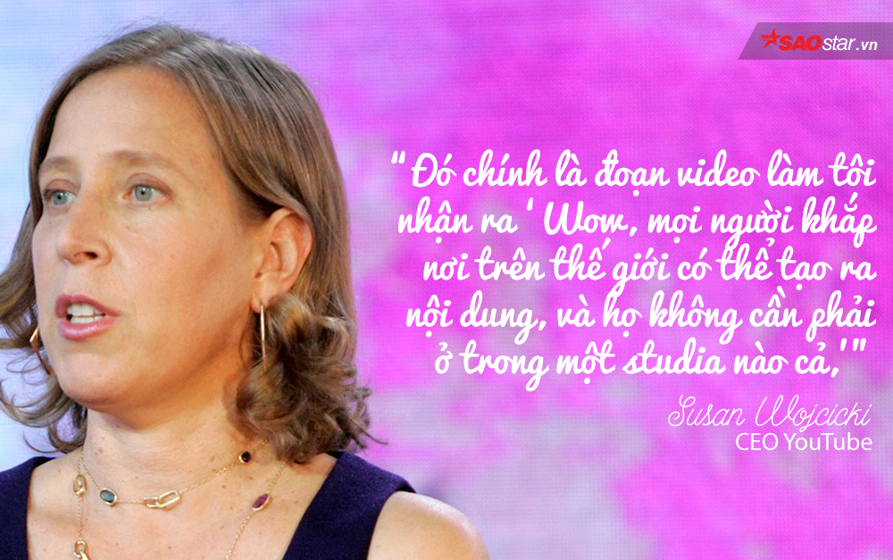 “Đó chính là đoạn video làm tôi nhận ra ‘Wow, mọi người khắp nơi trên thế giới có thể tạo ra nội dung, và họ không cần phải ở trong một studia nào cả,’” Wojcicki nói.