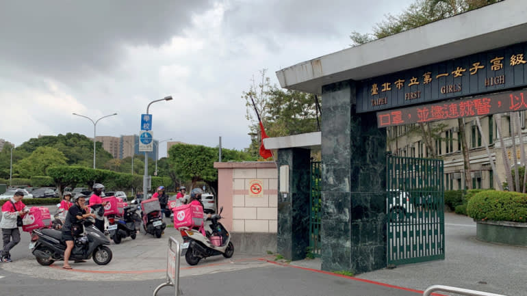 Giờ ăn trưa bên ngoài Trường Trung học Nữ sinh Taipei First thường chứng kiến sự đi và đến của hàng chục chiếc xe giao đồ ăn. Học sinh thường đặt đồ ăn qua smartphone và chúng được giao trong những chiếc hộp màu hồng bởi Foodpanda, một dịch vụ giao đồ ăn của Delivery Hero.
