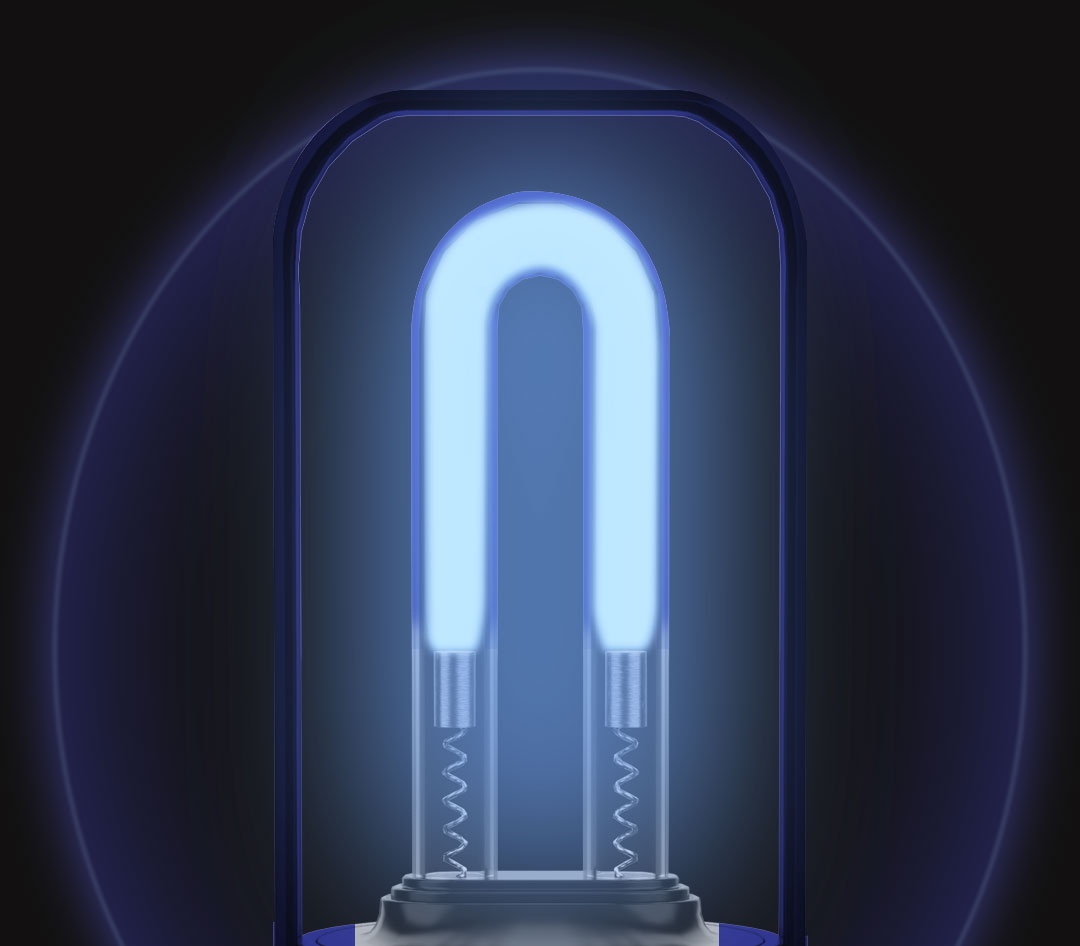 Đèn khử trùng Xiaoda sử dụng hai cơ chế để khử khuẩn là tia cực tím và hệ thống ống kép phát tán ozone.