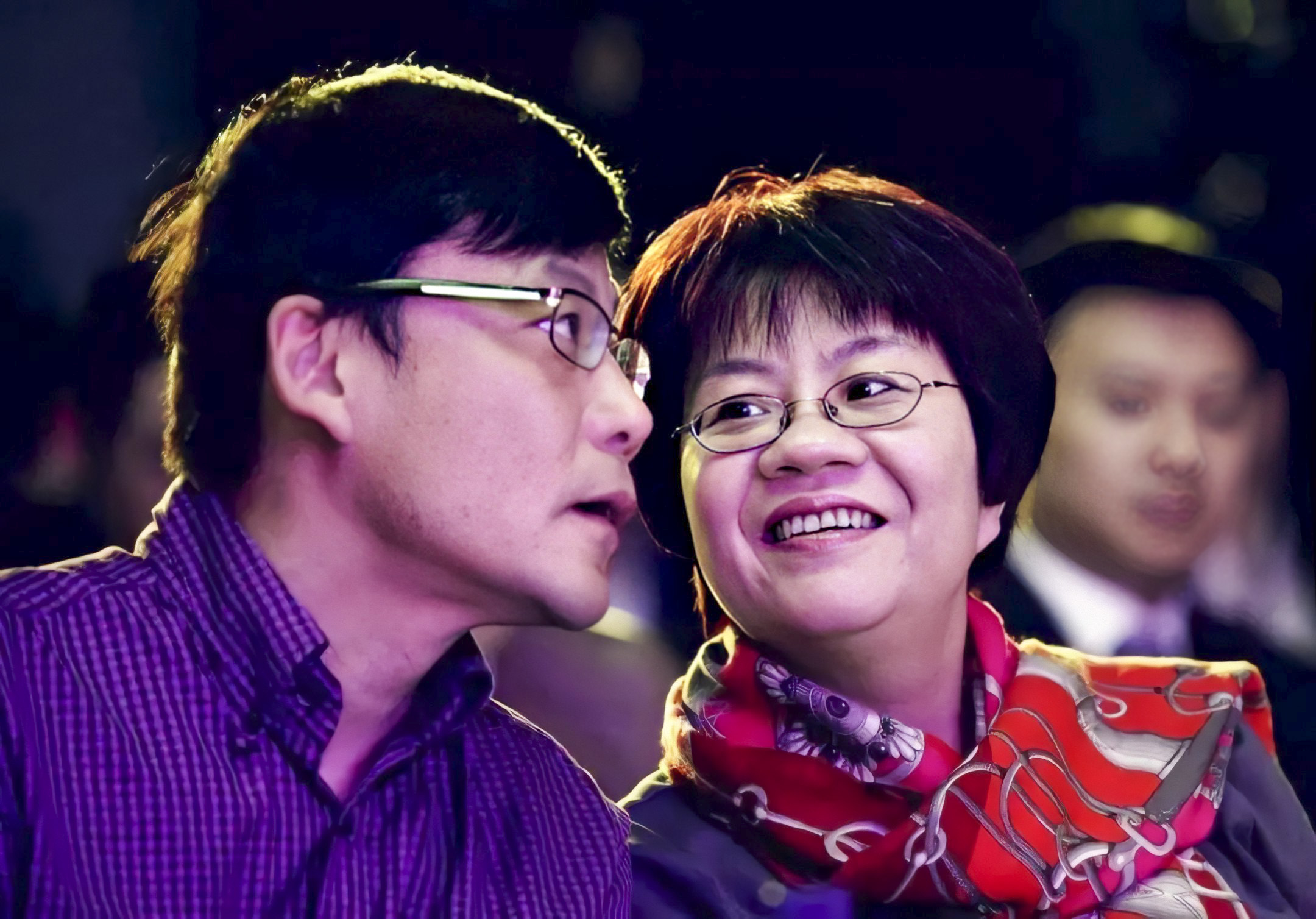 Peggy Yu và Li Guoqing thời còn mặn nồng bên nhau. (Ảnh: Jin Lee/Bloomberg via Getty Images)