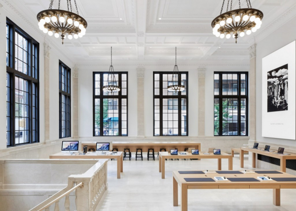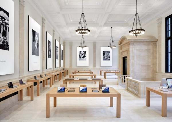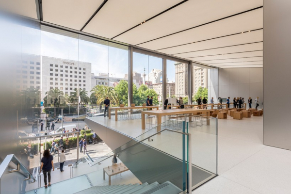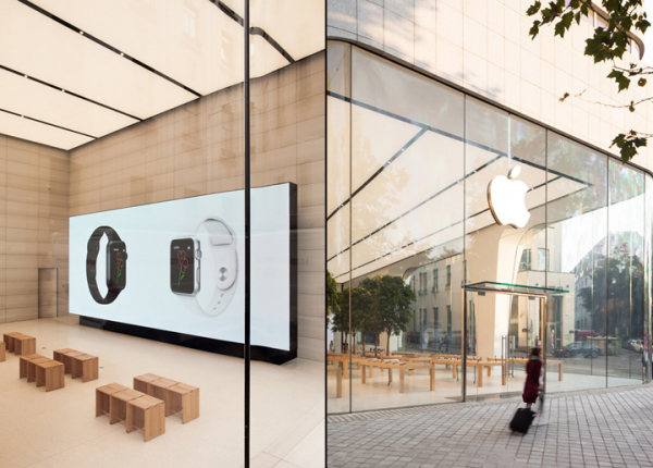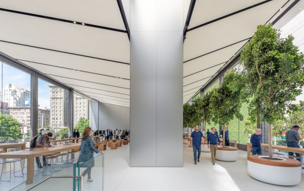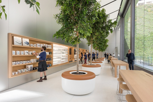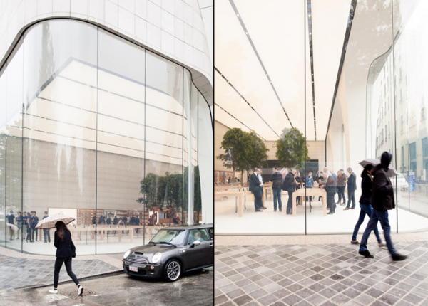 Nếu như bạn thấy Apple Store không có nhiều điểm khác biệt về tổng thể so với những Apple Store được mở cửa gần đây của Apple thì cũng không có gì quá ngạc nhiên bởi nó được thiết kế bởi foster + partners và đơn vị này chịu trách nhiệm cho sự nhất quán về ngoại hình của các cửa hàng bán lẻ của Apple.