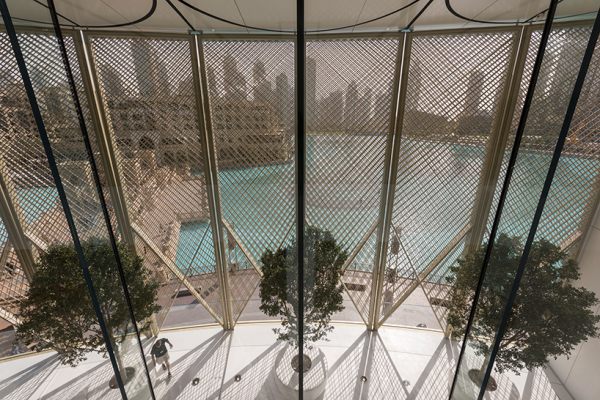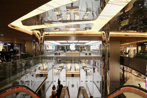 Apple Dubai Mall có lẽ là một trong những Appel Store ấn tượng nhất trên thế giới. Được thiết kế bởi foster + partners. Đứng từ Apple Store, khách ghé thăm có thể nhìn thấy tòa nhà cao nhất thế giới Burj Khalifa đồng thời Apple Dubai Mall cũng được đánh giá là có góc nhìn ra thác nước nhân tạo Dubai Fountain tuyệt vời nhất.