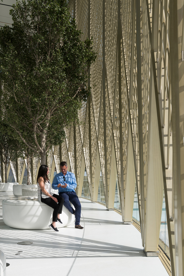 Đáng chú ý, Apple Dubai Mall có một hệ thống bao gồm 18 cảnh cửa sổ mà Apple gọi là “solar wings” (tạm dịch: đôi cánh mặt trời) với tác dụng giúp Appel Store này “tương tác” với điều kiện môi trường ở Dubai tốt hơn. Theo đó, khi mặt trời lên, hệ thống cửa sổ này sẽ được đóng lại theo cơ chế xoay để đảm bảo nhiệt độ bên trong cửa hàng mát mẻ. Trong khi đó vào buổi chiều, khi mặt trời lặn, hệ thống cửa sổ sẽ được mở ra để phô diễn tầm nhìn và địa thế tuyệt vời của Apple Store này.