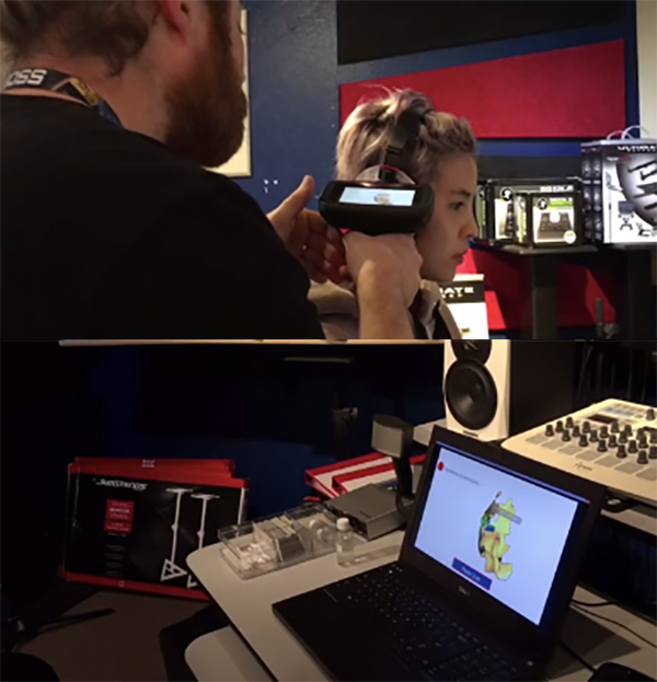 Vũ Cát Tường thực hiện đo tai để nhà sản xuất tuỳ biến chiếc tai nghe cô đặt hàng.