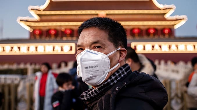 Một người đàn ông đeo khẩu trang khi đi qua Thiên An Môn, Bắc Kinh, Trung Quốc. (Ảnh: AFP)