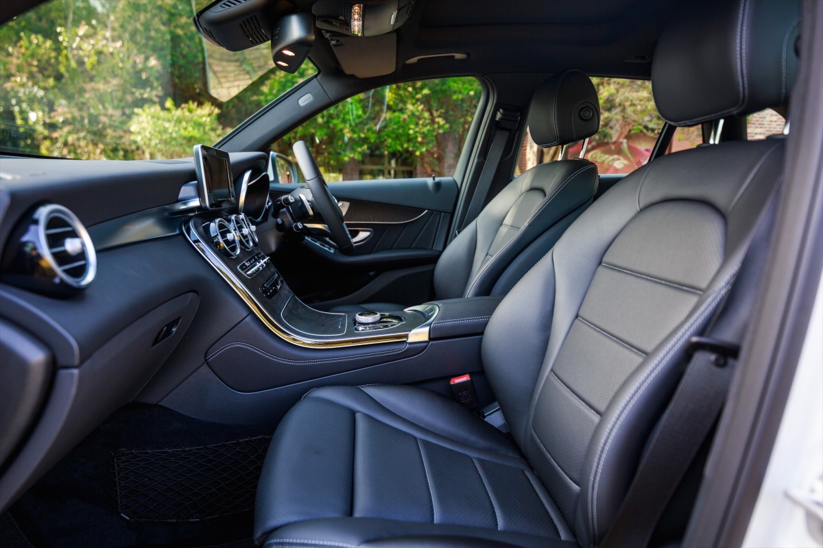 Mercedes-Benz GLC 250 có kích thước Dài x Rộng x Cao lần lượt: 4.656 x 1.890 x 1.644 mm. Chiều dài cơ sở xe đạt 2.873 mm. Xe sở hữu khoang nội thất rộng rãi và thoải mái, với ghế bọc da Nappa và các chi tiết được ốp gỗ cao cấp. (Ảnh: Paul Tan)