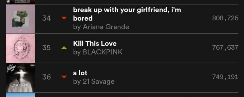 Tin đồn này còn cho rằng việc phát quảng cáo đó cũng được tính vào view chính thức của ca khúc trên Spotify, qua đó tác động đến thứ hạng của bài hát. Những người này tin rằng, chính “thủ thuật mà thứ hạng của “Kill This Love” đã tăng vọt đến 105 hạng trên bảng xếp hạng Spotify.