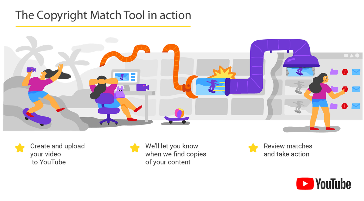 Công cụ được YouTube gọi bằng cái tên Copyright Match này sẽ được cập nhật tới tất cả những người dùng có trên 100.000 người theo dõi bắt đầu từ tuần tới. Trong vài tháng tiếp theo, nhiều người dùng hơn cũng sẽ được tiếp cận với công cụ này. Người dùng sử dụng Copyright Match sẽ được thông báo nếu các đoạn video sao chép tác phẩm của mình được đăng trên YouTube. Khi tìm ra các đoạn video trùng hợp, người tạo ra nội dung có thể tuỳ chọn hướng xử lý. Họ có thể không làm gì, liên hệ với người sao chép hoặc yêu cầu YouTube gỡ bỏ nội dung.