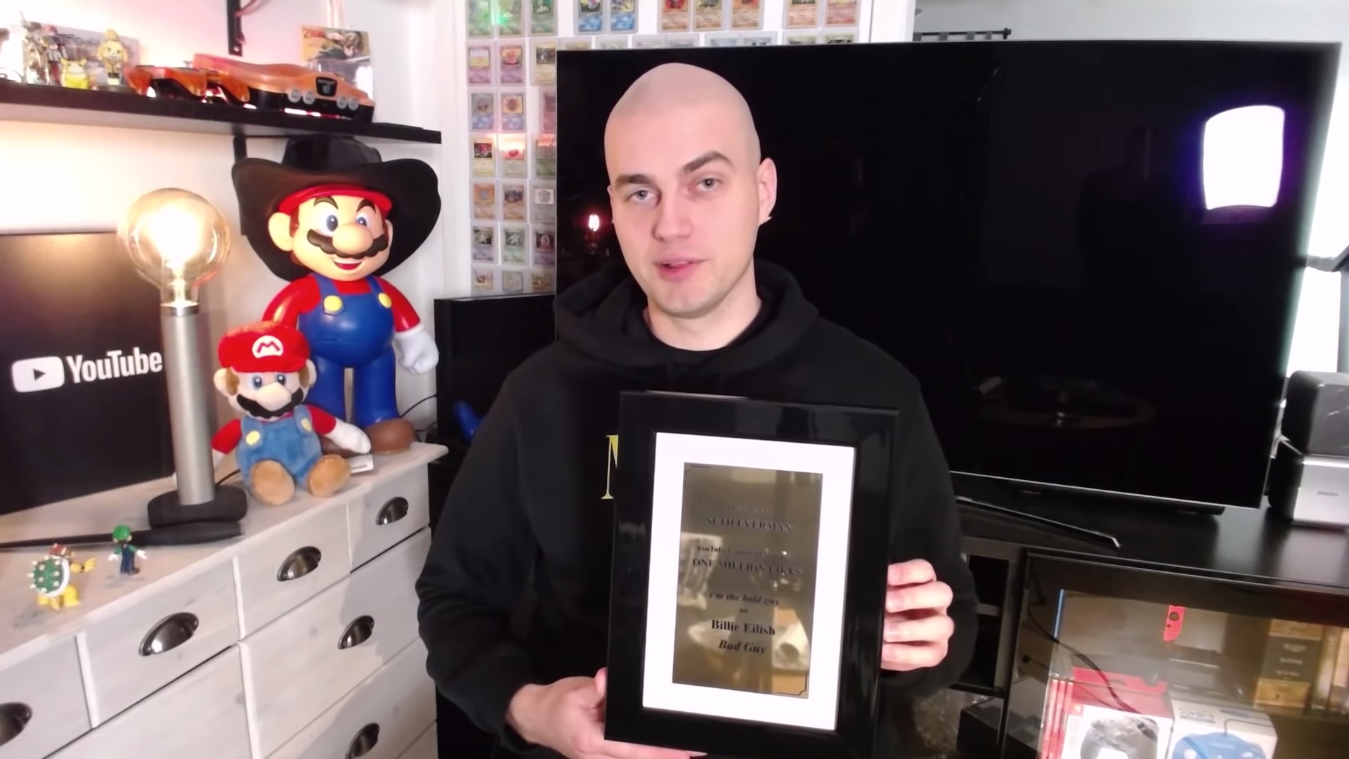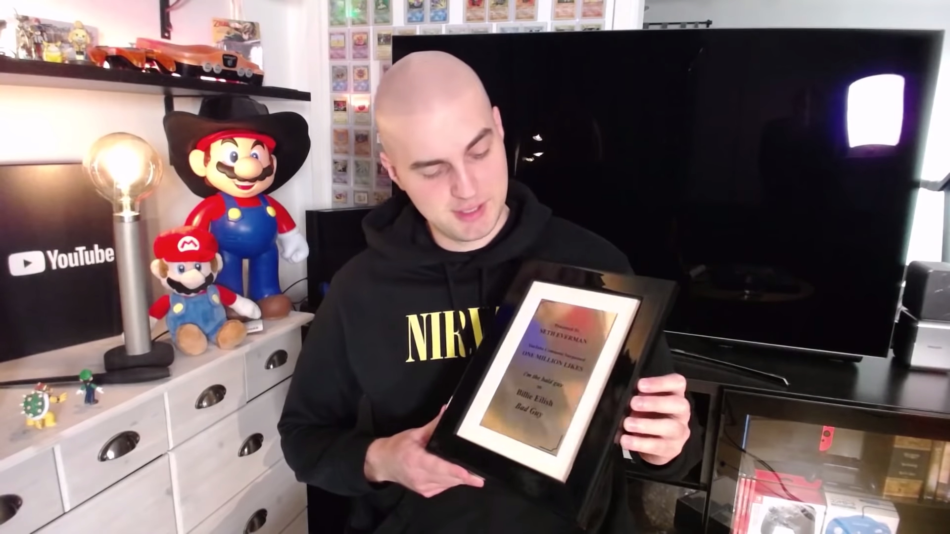 Seth Everman đang cầm trên tay Bảng Vàng nhờ sở hữu bình luận được 1 triệu lượt thích đầu tiên trên YouTube. (Ảnh: Seth Everman / YouTube)