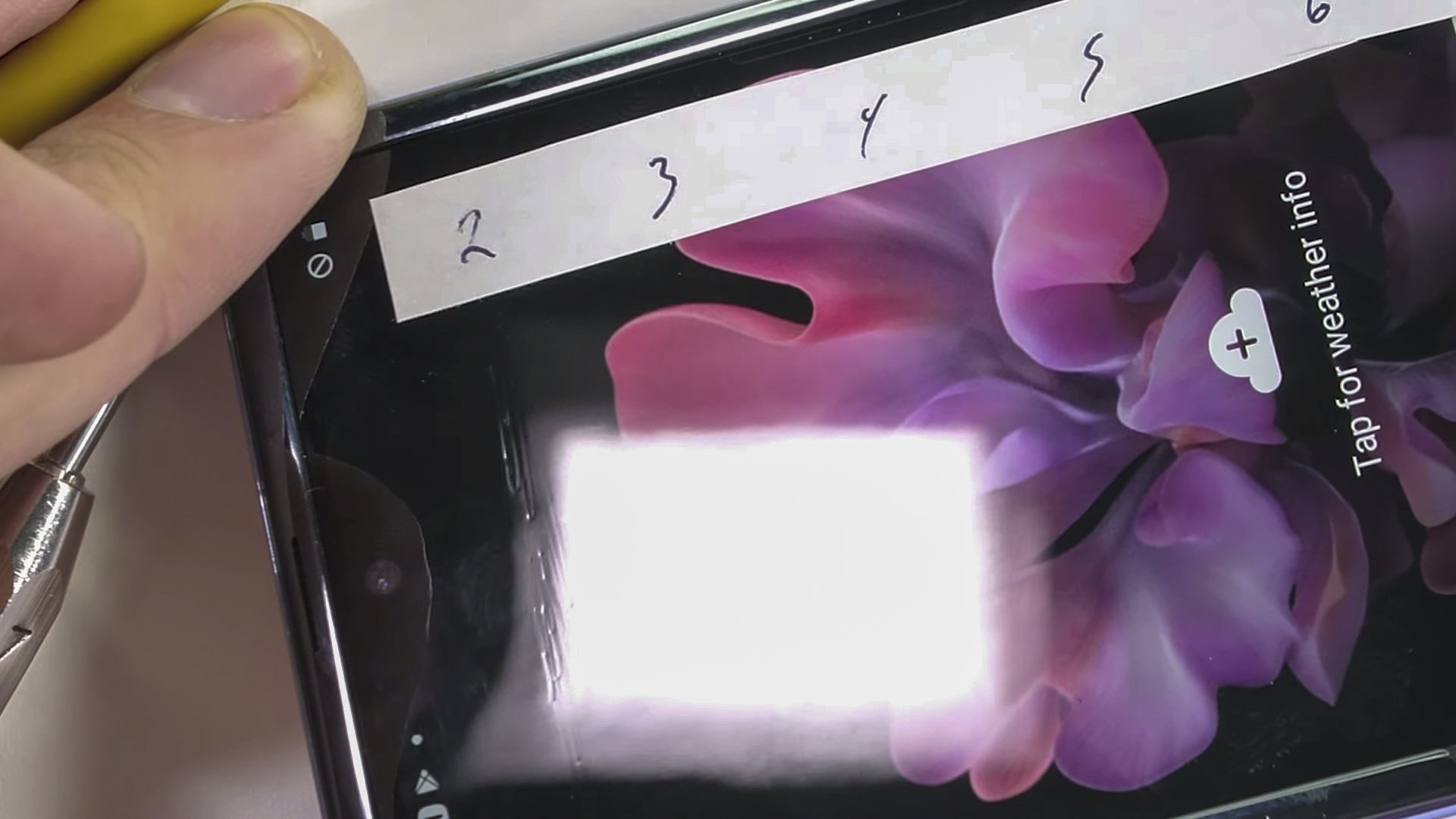 Đến thử nghiệm cào xước màn hình dựa theo độ cứng Mohr, màn hình Galaxy Z Flip bắt đầu bị trầy xước ở mức 2 và 3. Điều đáng nói, màn hình kính chỉ bị thường trầy xước từ mức 5 hoặc 6 trong các bài thử nghiệm của JerryRigEverything. Thậm chí ngay cả móng tay của YouTuber cũng có thể để lại các vết trầy xước trên màn hình.