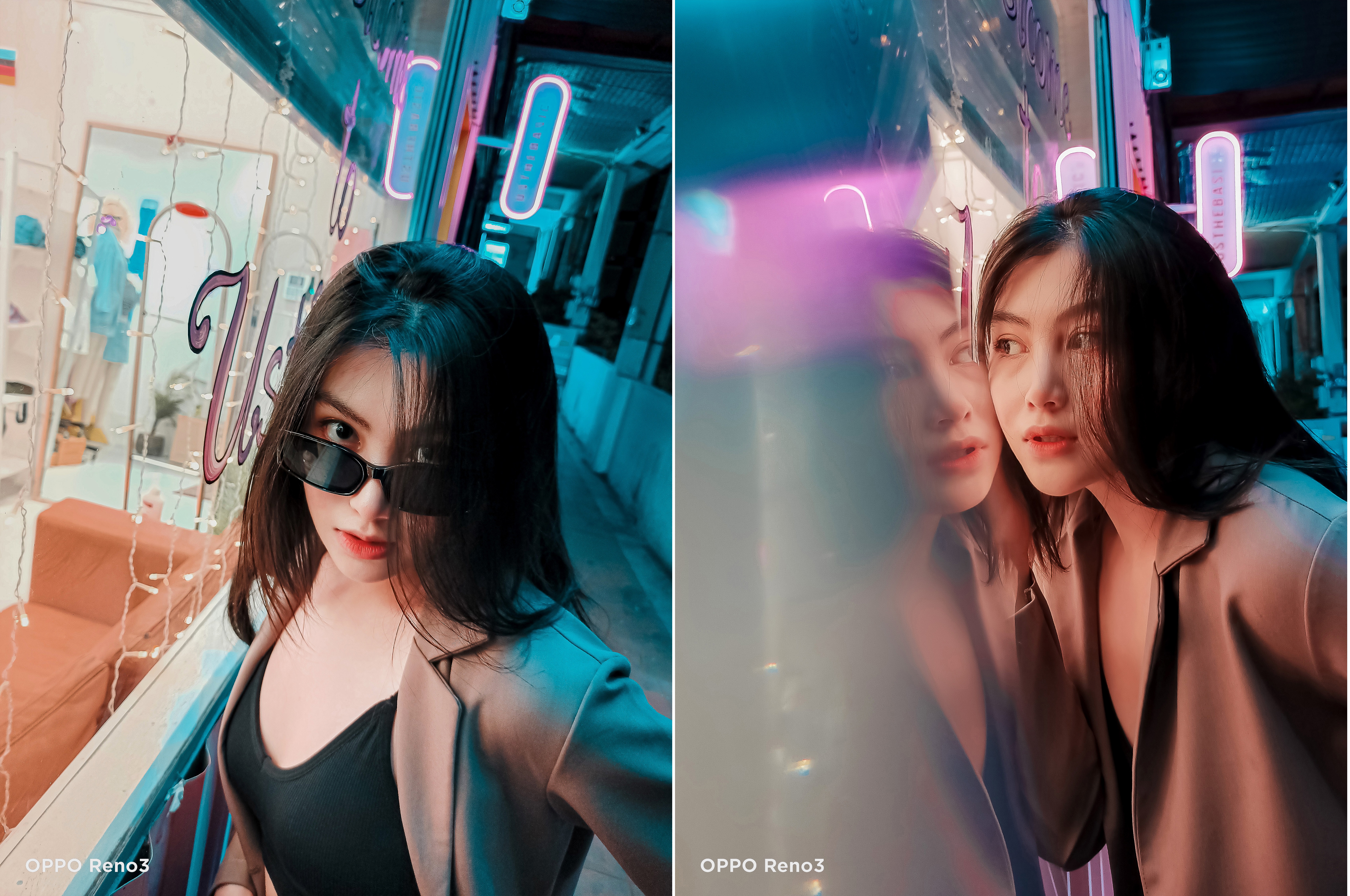 Sử dụng camera selfie đêm 44MP trên Reno3, khéo léo kết hợp cùng một số thủ thuật, dùng bóng kính, gương và đèn để tạo hiệu ứng cho ra bức ảnh lung linh hơn bao giờ hết.