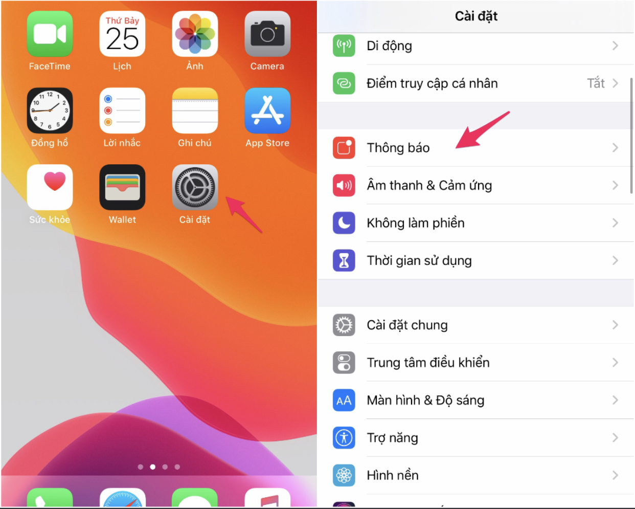 Để tránh cho iPhone và iPad trở nên tê liệt vì chuỗi ký tự lạ, bạn hãy vào Settings (cài đặt) > Notifications (thông báo).