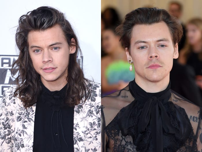 2. Khi mới hoạt động với One Direction, Harry Styles đốn tim fan nữ nhờ vẻ ngoài tươi tắn của một thiếu niên. Sau khi bắt đầu sự nghiệp solo, anh chàng bắt đầu nuôi mái tóc dài ‘nghệ’ phát khóc. Các fan của Harry có 2 lựa chọn: Tóc dài, quần áo gọn gàng hoặc tóc ngắn, trang phục ren rúa.