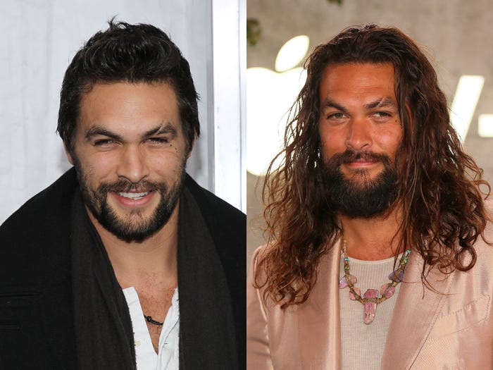 3. Trước khi nổi danh với vai diễn trong Game of Thrones, Jason Momoa chỉ để tóc ngắn rất bình thường. Từ ngày nuôi tóc dài, sự nghiệp của anh bắt đầu khởi sắc rõ rệt. Jason hợp tóc dài đến nỗi, nếu cố tình cắt đi, vợ anh chàng sẽ ‘dỗi’.
