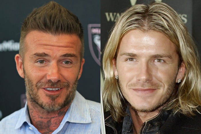 8. Trong suốt sự nghiệp của mình, David Beckham đã để rất nhiều kiểu tóc, từ đầu cua, undercut đến buộc củ tỏi. Quả thực ‘tóc đẹp vì người’, mái tóc cắt bằng ngang vai cũng không làm Beckham bớt tỏa sáng.