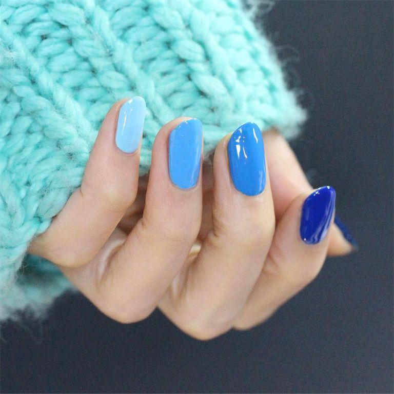 Không nhất thiết phải ra các salon đắt tiền, chỉ cần chút khéo tay cùng hai lọ sơn xanh dương và trắng, các nàng đã có thể thực hiện được kiểu tô móng ombrey đơn giản này.