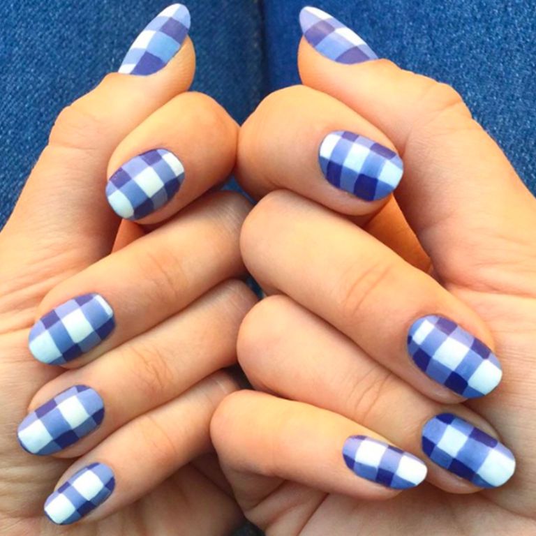 Ngoài sọc, kiểu tô móng ca-rô cũng là một gợi ý hay cho những ngày cuối xuân. nếu tinh tế chọn màu móng cùng tông với trang phục, vẻ ngoài của bạn sẽ còn được cộng điểm.