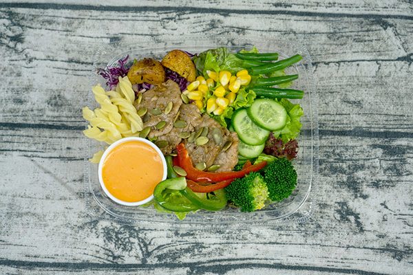 Đối với một Gymer, thịt bò dường như không thể thiếu trong chế độ dinh dưỡng. Bởi lẽ, hàm lượng về giá trị dinh dưỡng của chúng gần như đứng đầu, cao hơn gấp nhiều lần so với thịt heo, gà hay cá. Cứ 100gram thịt bò mang đến cho bạn đến 20gram protein. Đặc biệt, các axit amin thiết yếu cho cơ thể lẫn cơ bắp tương đối nhiều, trong khi chất béo và cholesterol lại khá thấp, thế nên, món Salad này vô cùng “chuẩn chỉnh” trong quá trình giảm mỡ, tăng cơ để thay đổi hình thể.