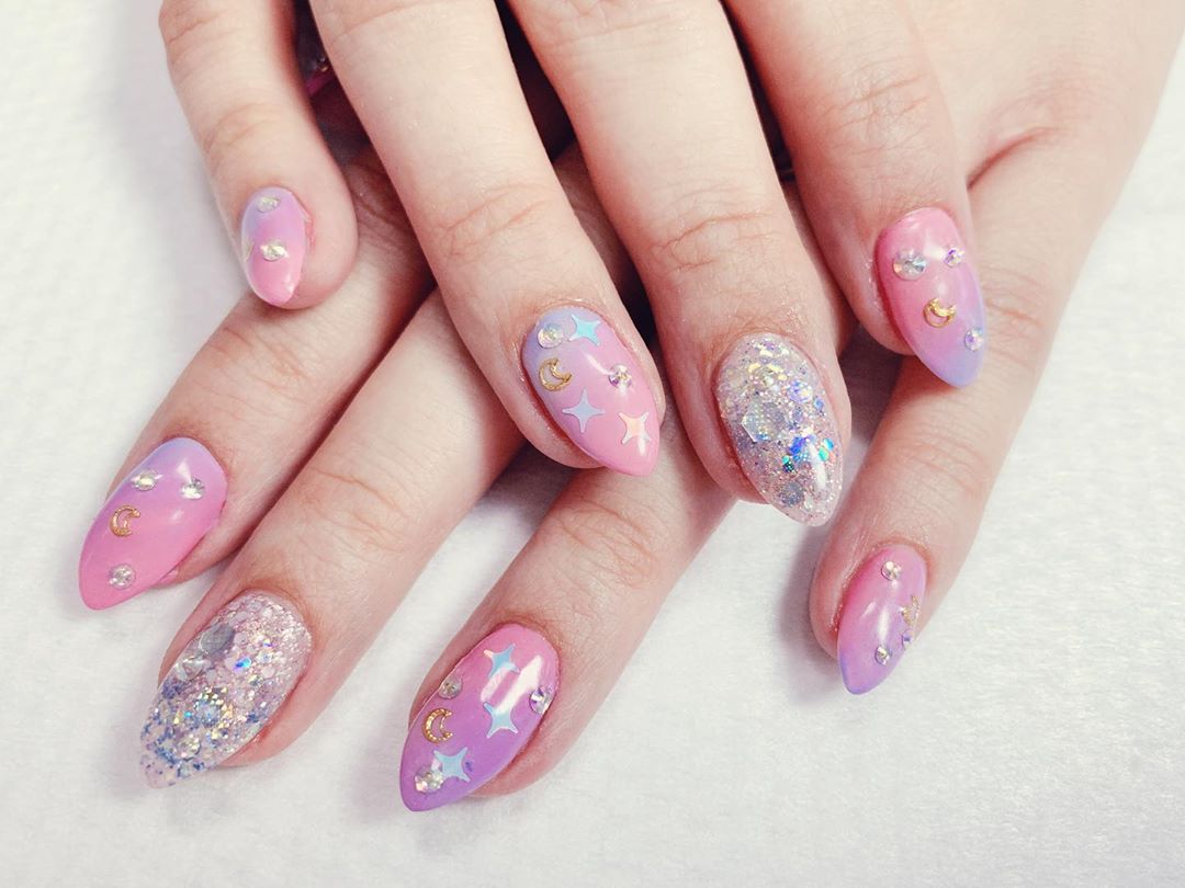 Từ lâu những ngón tay “lấp lánh” mang đến phong cách sang trọng và quyến rũ đã luôn được nhiều cô nàng yêu thích. Thế nhưng, thay vì “dát” nhũ kim tuyến hoặc sequin đều hết 10 ngón tay thì xu hướng sơn móng tay lấp lánh của Hàn Quốc chỉ phủ ánh nhũ và hạt sequin một vài ngón tay.