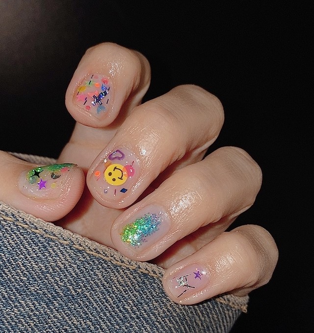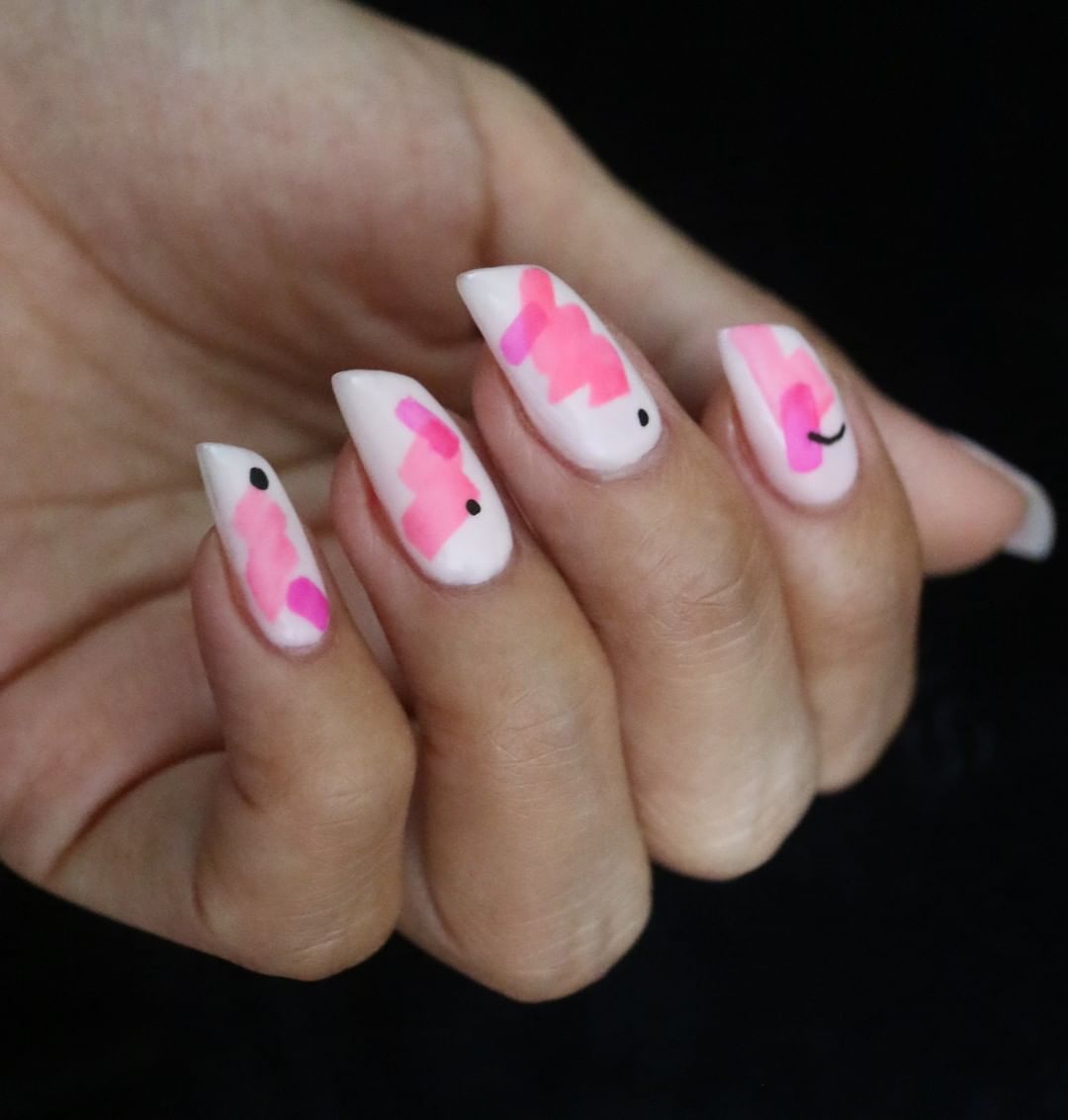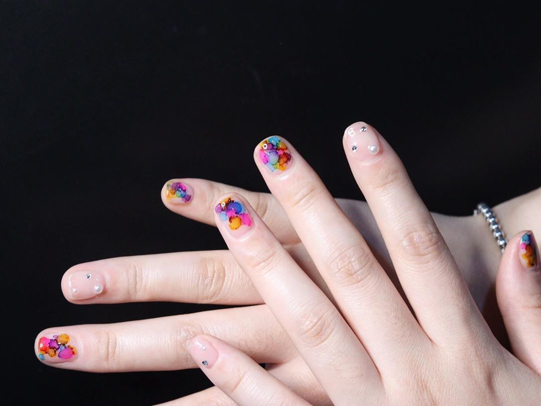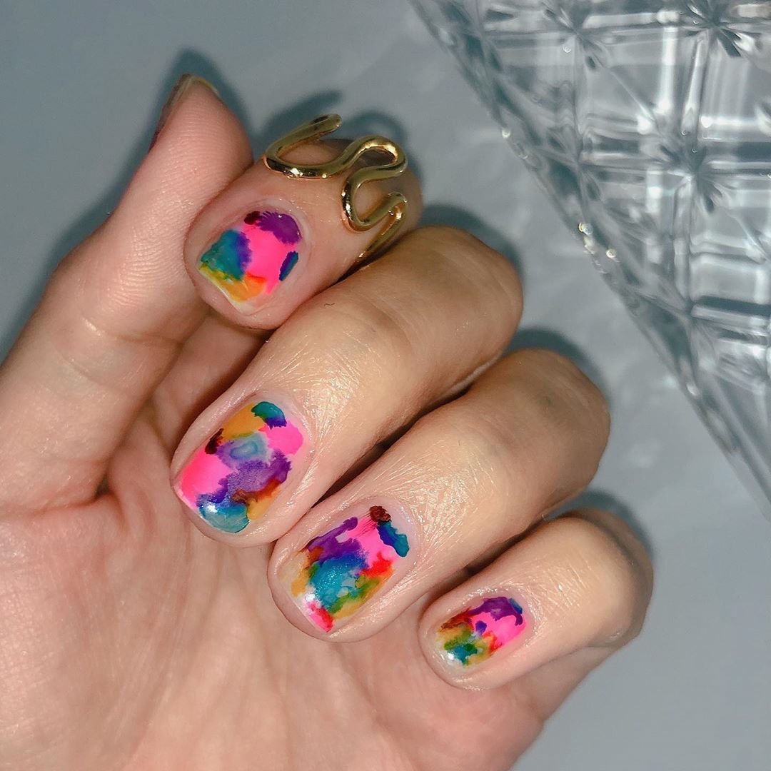 Những vệt màu loang lỗ pha với nhau mang đến cảm giác như bạn vừa kết thúc một lớp học vẽ. Bên cạnh đó mẫu móng này cũng giúp bàn tay của bạn trông thật “màu mè” đặc sắc nhưng không hề sến súa chút nào.