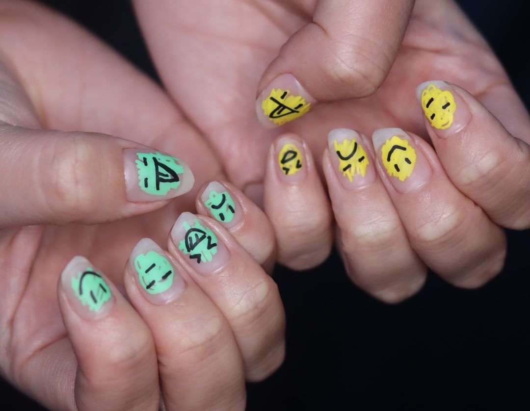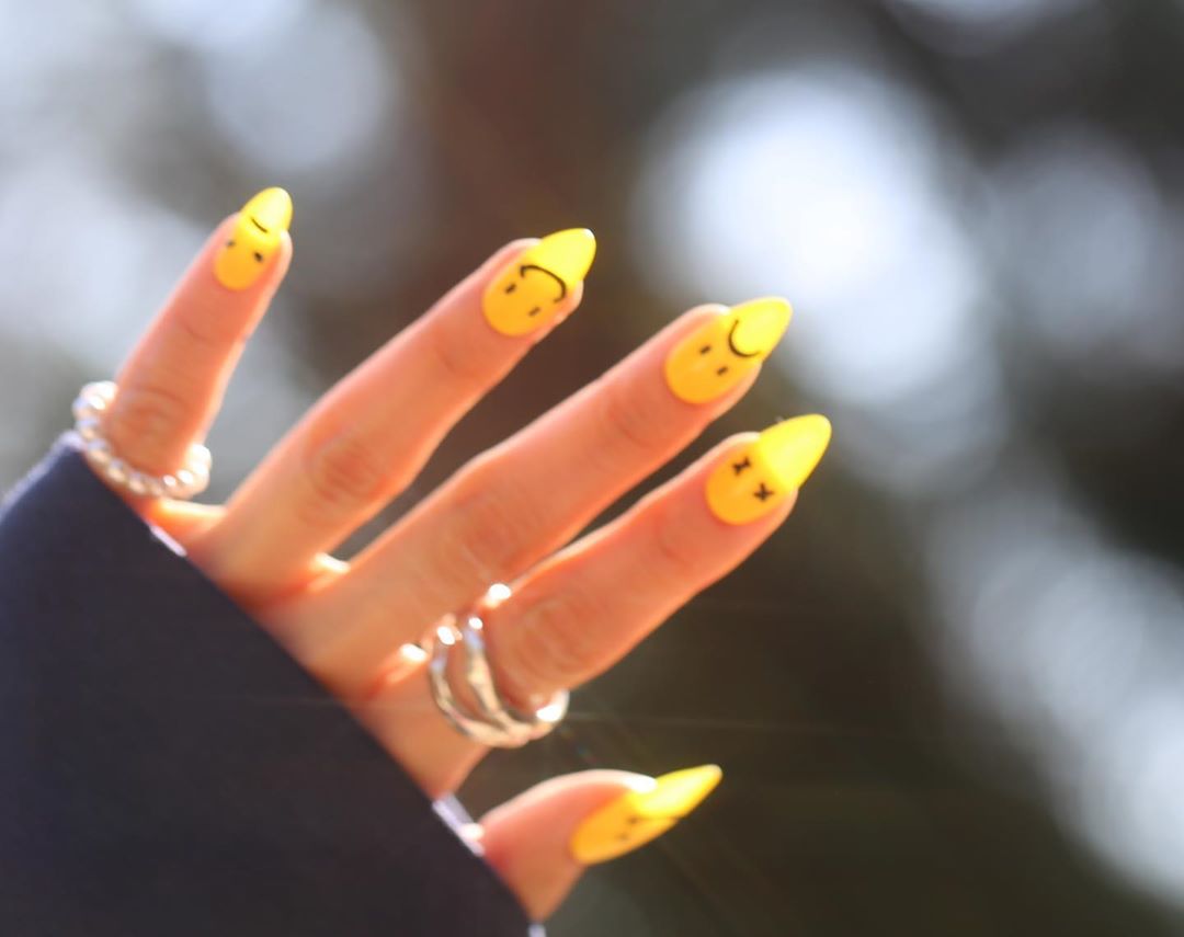 Đơn giản nhưng không hề đơn điệu. Đừng ngại điểm xuyết đôi bàn tay với sắc vàng nổi bật cùng khuôn mặt cười như này, chắc chắn bạn sẽ bạn trông thật nổi bật và ấn tượng