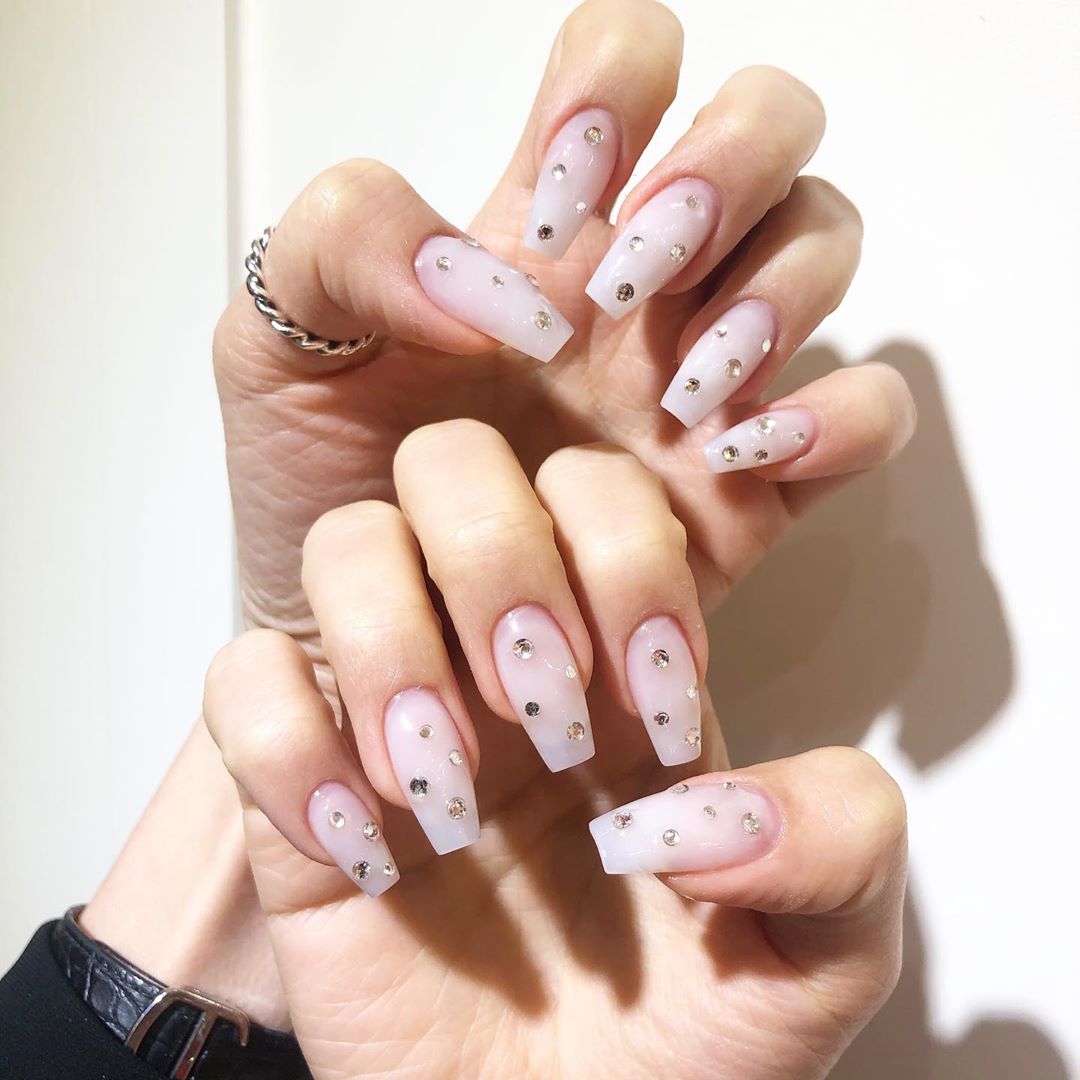 Hoặc kiểu móng tay lấp lánh đơn giản như trên sẽ mang lại cho bạn bộ móng tươi trẻ và tự nhiên hơn rất nhiều