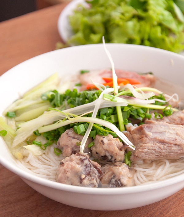 Bữa trưa: bánh canh cua nấu với thịt, trái bơ.
