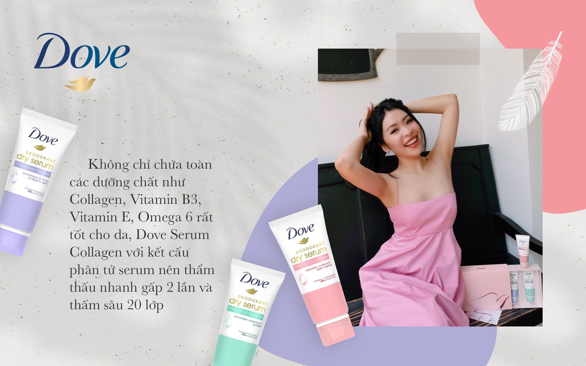 Dù là bí kíp nhỏ trong quá trình dưỡng da vùng dưới cánh tay nhưng Dove Serum Collagen lại “có võ” khi chinh phục nàng Beauty Blogger bởi công dụng giúp vùng da nhạy cảm này sáng lên trông thấy sau vài tuần sử dụng.