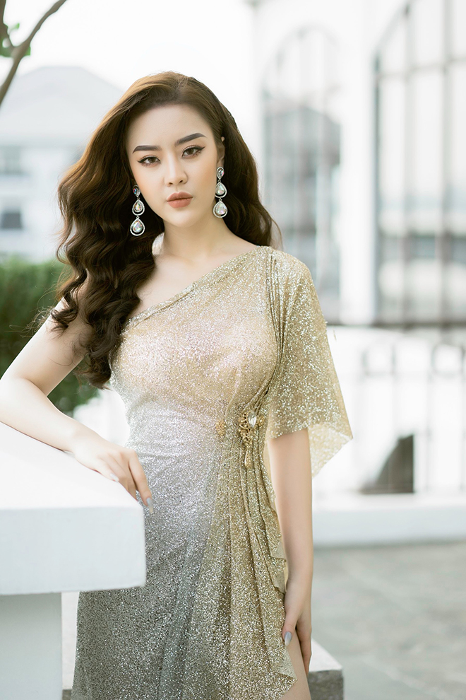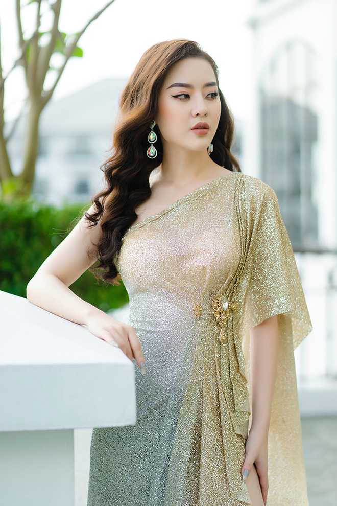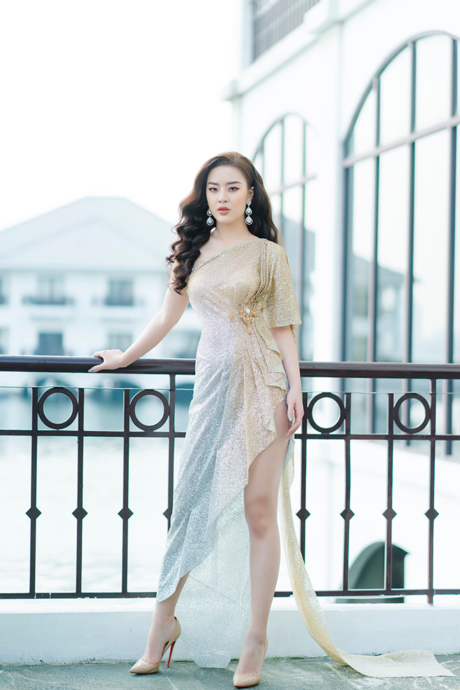Lựa chọn thiết kế đầm ánh kim lệch vai, Hoàng Hải Thu khoe vóc dáng thanh mảnh “mình hạc sương mai”