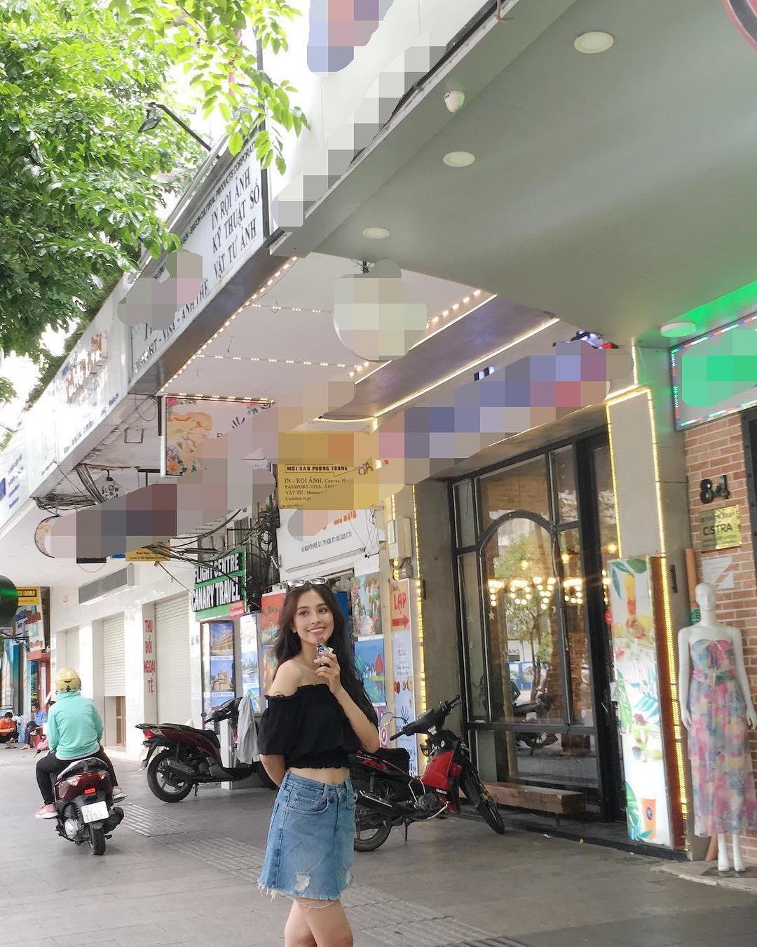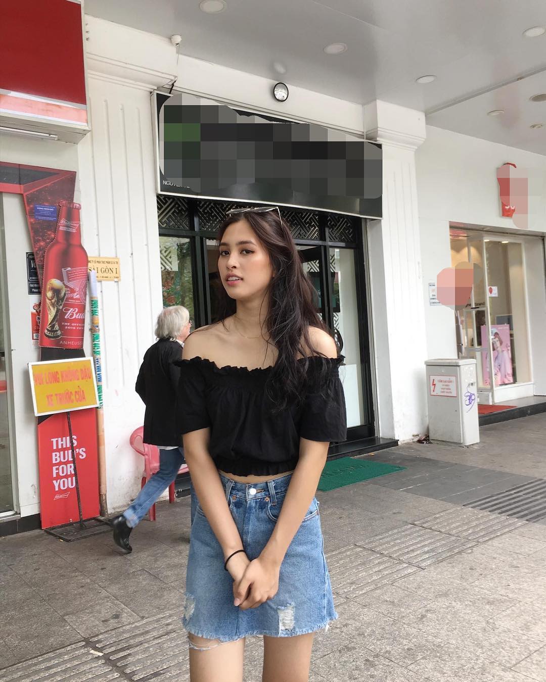 Tiểu Vy xuất hiện giản dị với outfit đơn giản và mái tóc xoăn dài.