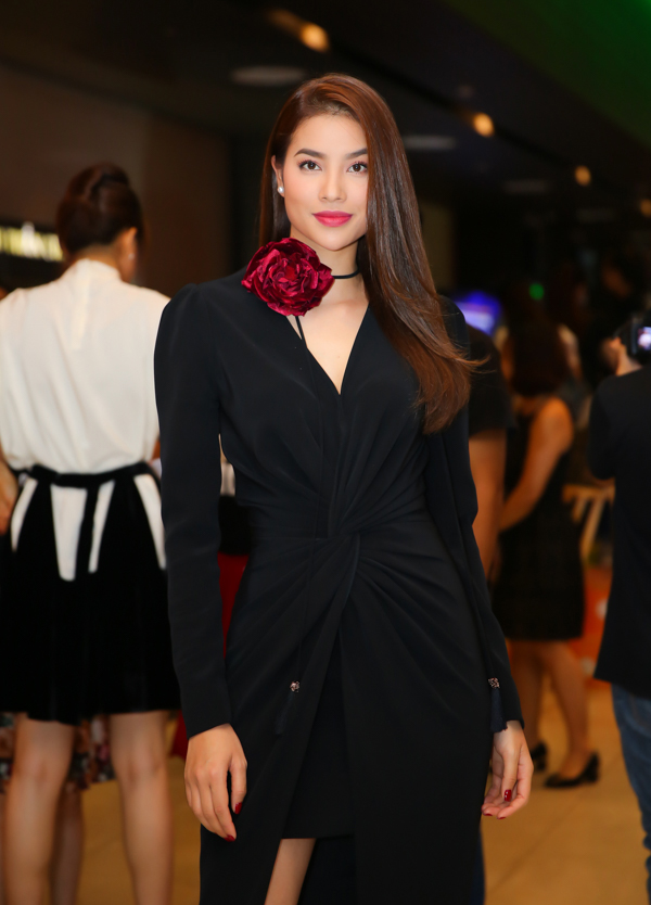 Trái với H'Hen Niê, Phạm Hương lại chọn lối trang điểm trong suốt với điểm nhấn là đôi môi đỏ hồng rực rỡ. Với lối trang điểm này, Phạm Hương vừa có được vẻ đẹp đài các lại vô cùng cuốn hút.