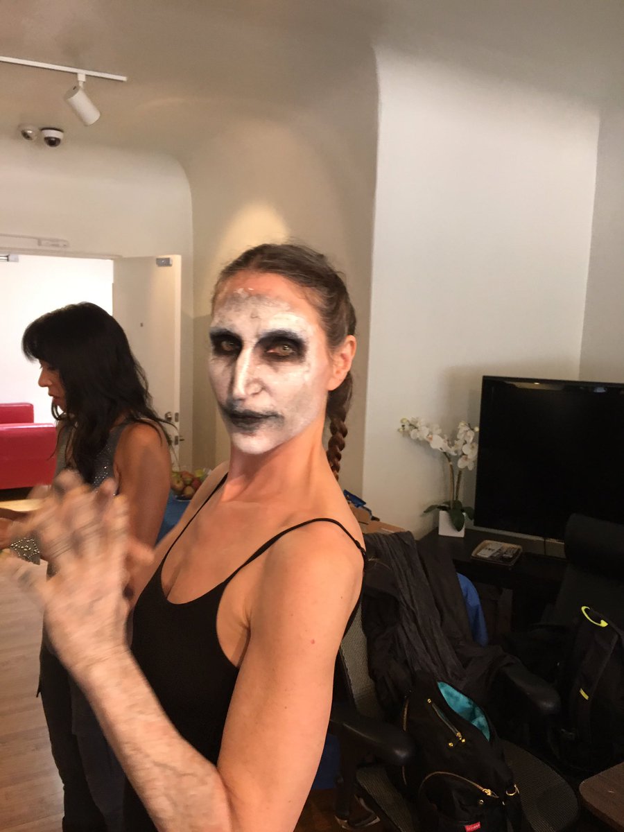 Ngoài đời thực, gương mặt của Bonnie Aarons cũng khá giống tạo hình ma sơ Valak. Cô có chiếc mũi dài khoằm, gương mặt nam tính và đôi mắt sâu đầy bí hiểm.